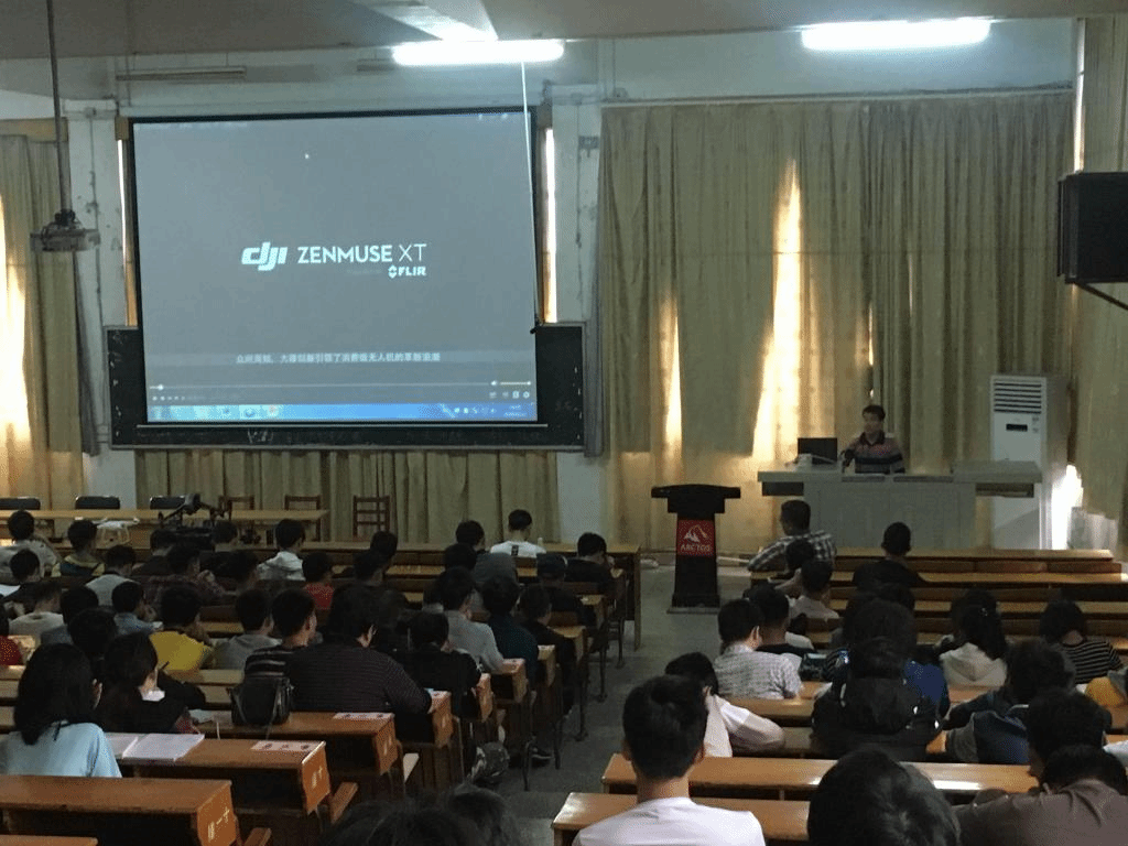 罗明教授结合自身对无人机行业的认知和多年的从业经验,用丰富的专业数据,从政策法规、技术运用、未来发展方向等几个方面为在场同学介绍了当前最新的无人机发展动向;为同学们分析了无人机在中国的使用情况、未来发展机遇以及行业的前景,鼓励同学们对该领域的技术进行深入学习与研究;通过生动的影像展示以及无人机现场演示为在场同学介绍了无人机从影视娱乐、农业到测绘、救灾等各个方面的经典案例,并带着同学们们共同探索了无人机未来可开发的运用场景。