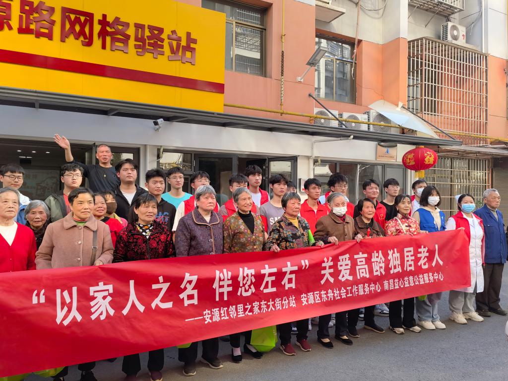 随后来到新建社区安源红邻里之家,携手萍乡“爱与陪伴”公益开展关爱高龄独居老人活动,为居民进行智慧助老、反电诈政策解读等学雷锋志愿服务活动。本次活动的主题为“以家人之名,伴您左右”。活动现场,志愿者们与亲切地老人们拉家常,聆听他们的心声并了解他们生活当中有无实际困难,带领老人们积极地参与手语歌曲的表演,为独居老人们带来温暖的陪伴与问候。社区居民对此次活动给予了极高的评价。