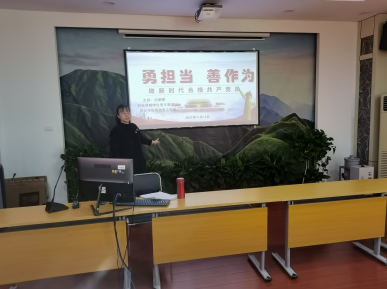 2021年11月12日中午,在鼎新楼2200会议室,由萍乡市“两优一先”获得者、萍乡市优秀党务工作者占丽娜老师,给机电学院入党积极分子上了一堂精彩的党课,本次党课围绕“‵勇担当,善作为′做新时代合格党员”主题开展。
