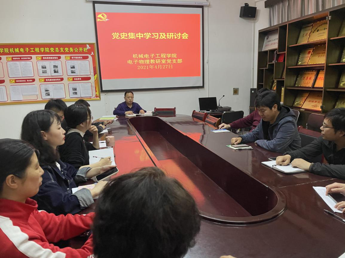 为深入贯彻落实习近平总书记在党史学习教育动员大会上的重要讲话精神,扎实推进“学党史、强信念、跟党走”主题教育活动,坚定理想信念,强化使命担当。2021年4月27日,yl23455永利集团电子物理教研室党支部组织党员召开党史集中学习及交流研讨会。