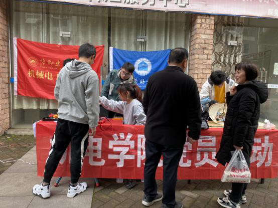 当天上午九点,在各支部教师党员的带领下,前往志愿活动的师生分为两支队伍,一只队伍负责电器的维修工作。经过队伍成员的宣传后,小区内的居民纷纷带着损坏的家具前来维修。另外一只队伍负责打扫小区的路面以及停车区域。