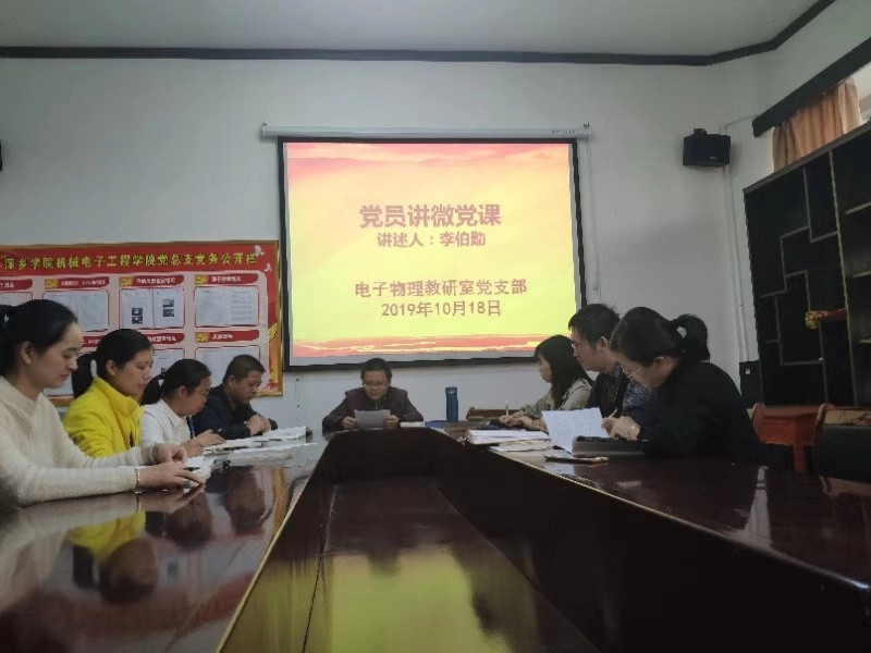 10月18日,yl23455永利集团电子物理教研室党支部全体党员在2216教室开展“不忘初心,牢记使命”主题教育活动,活动由党支部书记李伯勋主持。此次活动中,大家集体学习了习近平总书记对江西工作重要讲话金句,学习了习近平总书记在“不忘初心,牢记使命”主题教育会议上的讲话内容,深刻领会了此次讲话的目标要求和精神内涵。