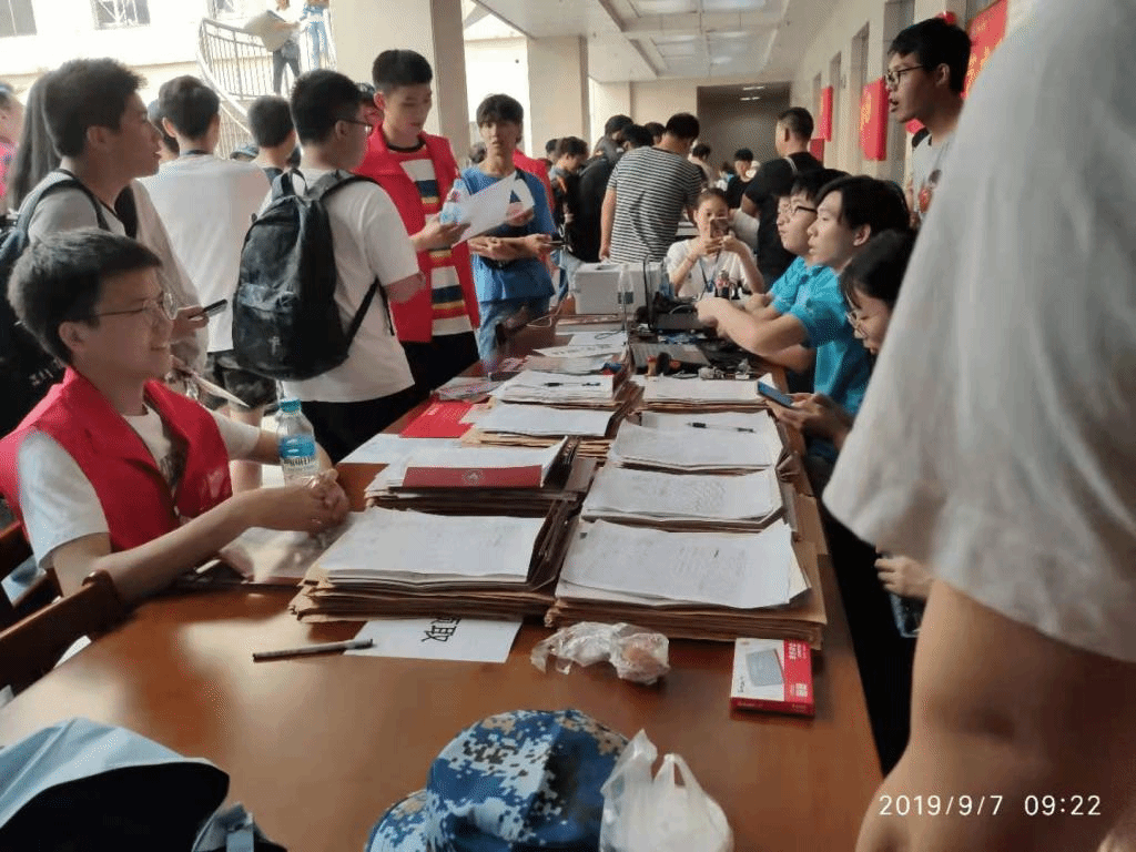9月7、8日是2019级新生入学注册报到时间,在这期间,学生党员及入党积极分子身穿红色志愿者服装帮助新生进行入学报到程序。酷热的太阳底下,随处可见他们奔走的身影,帮忙提行李、端茶倒水给学生家长……他们亮出了学生党员的风采,极大的体现了党员与入党积极分子的热情与风貌。