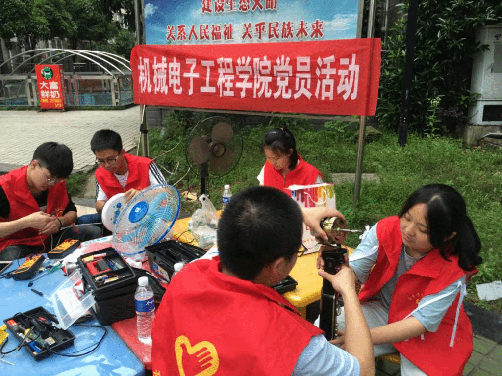 为充分发挥党员先锋模范作用,切实提高广大党员引领和实践科学发展的能力,2019年5月21日,在yl23455永利集团党总支统筹安排下,机电学院教工党支部组织党员走进萍乡市安源区城郊管委会横龙社区开展“义务维修进社区”主题党日活动。