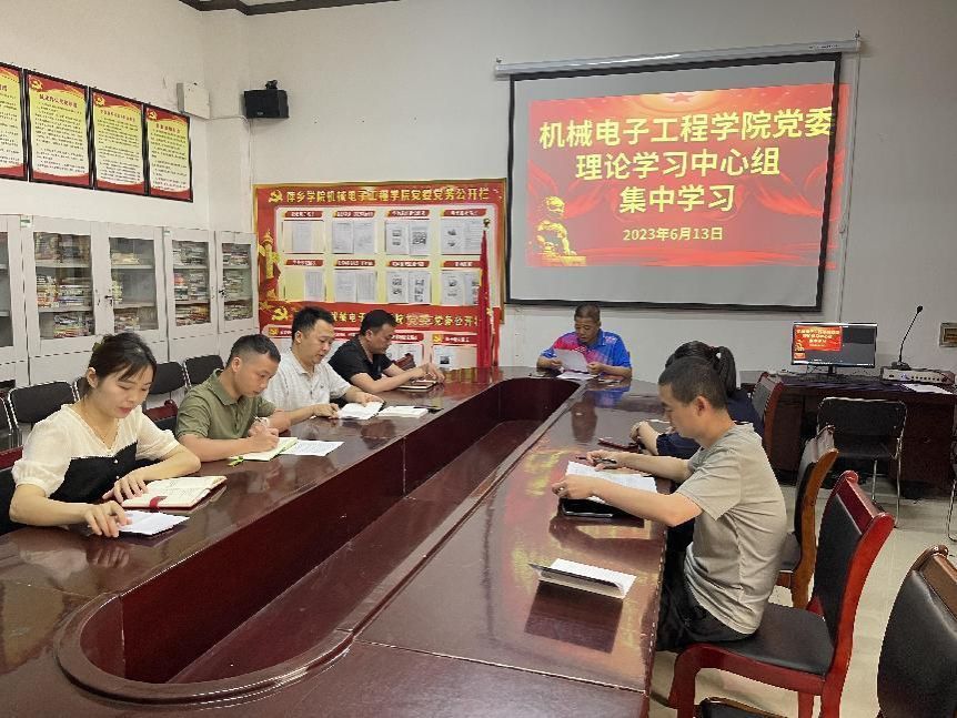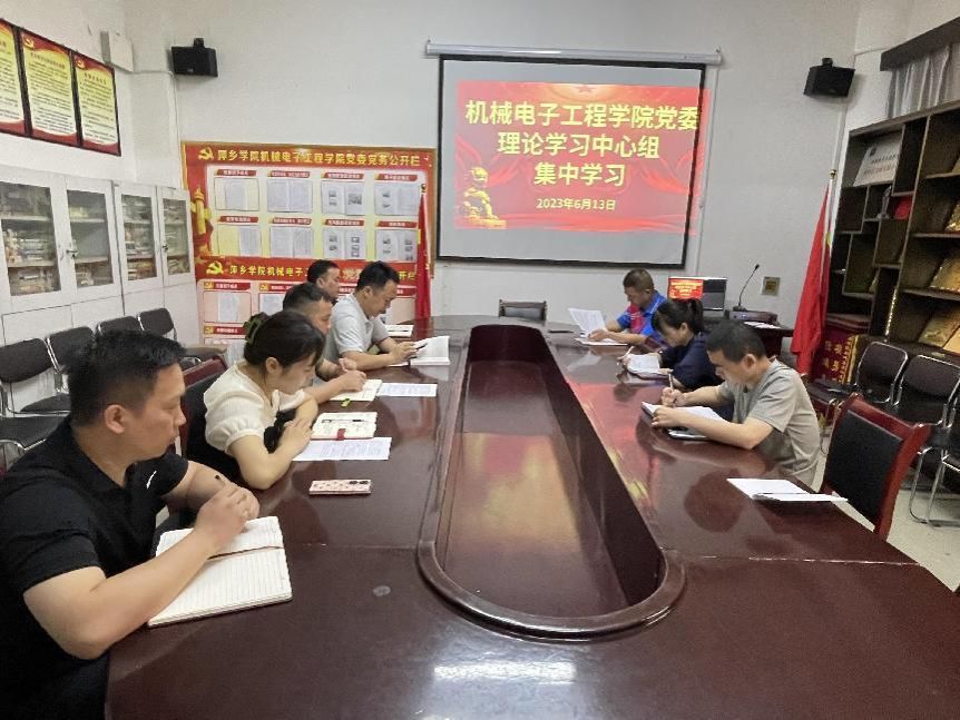 6月13日上午,机械电子工程学院在鼎新楼2216党员活动室召开党委理论学习中心组学习会,专题学习习近平在中共中央政治局第五次集体学习时的重要讲话精神以及省长叶建春在江西农业大学形势报告会暨专题党课上的讲话精神。学院党政班子成员出席会议,学前教育学院张沙老师列席会议,学习会由学院党委书记王斌主持。