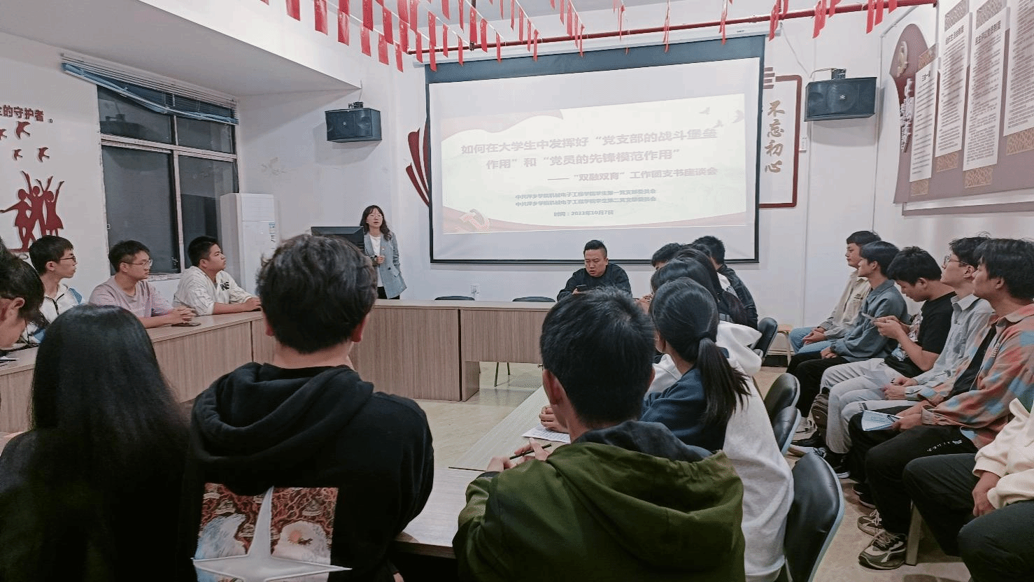 为充分发挥学生党支部的战斗堡垒作用和学生党员的先锋模范作用,促进“双融双育”工作真正提质增效,推进省级“样板支部”建设工作,机电学院学生党支部在学院团支书中开展“如何在大学生中发挥好学生党支部的战斗堡垒作用和党员的先锋模范作用”主题调研,以期在学院形成“以党建带团建、团建助党建”的良好局面。10月7日晚,在18栋“红管家”一站式学生社区召开团支书座谈会。学院党委副书记兼学生第二党支部书记童乐,学生第一党支部书记占丽娜,学院23名班级团支书参与会议。会议由占丽娜书记主持。