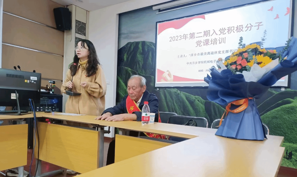 本次培训,邀请了萍乡市最美离退休党支部书记江福星同志、学生第二党支部支委黄鸥、学生第一党支部书记占丽娜、学院党委副书记童乐分别作了《学习习近平总书记视察江西讲话精神》《如何端正入党动机》《党支部工作介绍》《新时代党员发展工作程序》的专题授课。