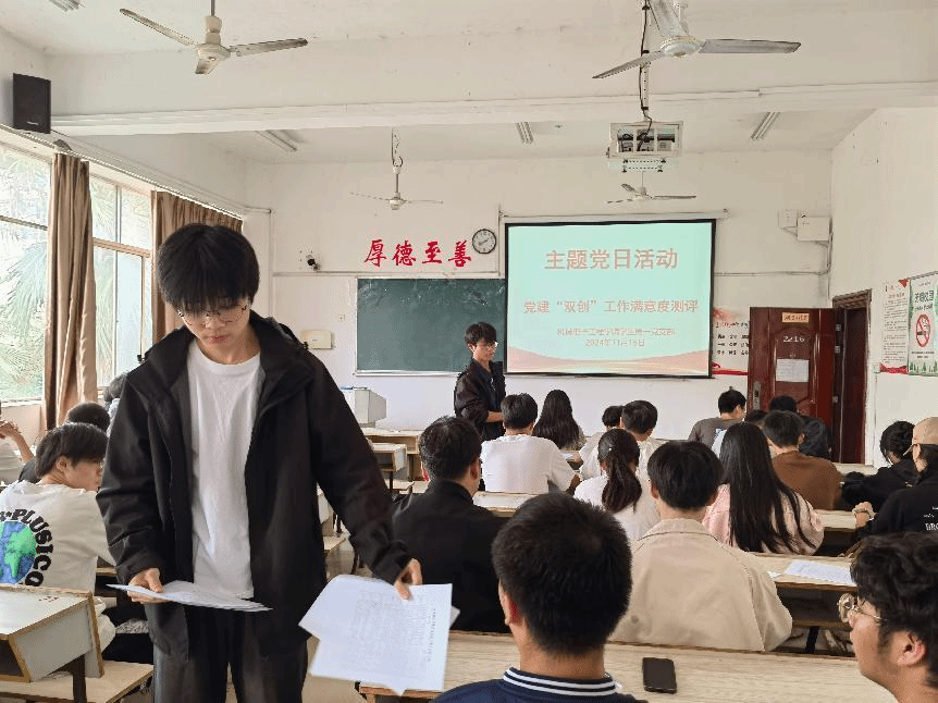 根据《关于开展全省首批新时代高校党建示范创建和质量创优工作验收的通知》精神和要求,2024年11月15日中午,yl23455永利集团在鼎新楼2216教室开展了yl23455永利集团学生第一党支部“全省党建工作样板支部”满意度测评会。yl23455永利集团党内外师生代表共计40人参加会议,其中教师党员8名、学生党员5名、预备党员5名,入党积极分子12名,学生代表10名。