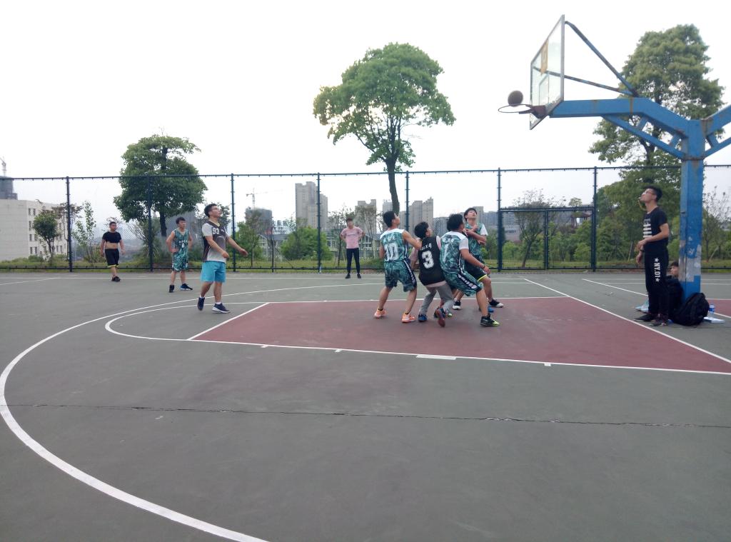 下午的阳光并不刺眼,微风阵阵,很适合打比赛。球员们早早便做好了热身运动,只待比赛开始。随着裁判一声哨响,只见篮球在空中划出一道美丽弧线,比赛便正式开始了。虽然赛时将长达一个多小时,参赛队伍们却并不打算试探,比赛刚刚开始,双方队伍便展开的激烈攻势。奔跑,躲闪,投篮,每支队伍都在拼尽全力得分,拼尽全力向胜利迈进。激烈精彩的比赛吸引着越来越多其他的学员驻足观看,场外一度爆发出激烈的掌声和呐喊。