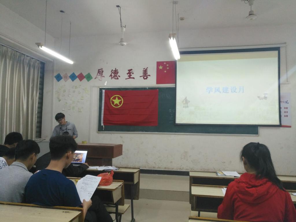 2018年4月22日19点,机电学院17电信一班在鼎新楼2316教室开展了一次“学风建设月”动员大会,参加本次活动有17电信一班的全体同学和学生会成员代表。