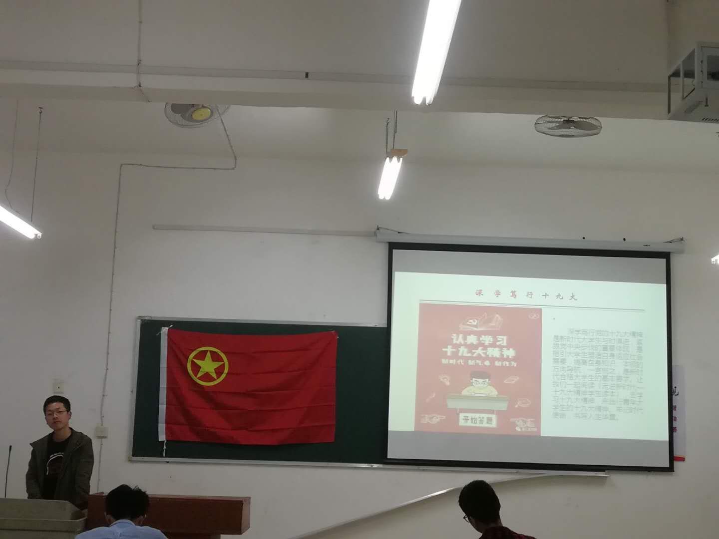 首先班主任刘老师给大家介绍了十九大的召开以及时代背景,随后学生们就“牢记时代使命,书写人生华章”这一主题发言,讲述了自己生活中的事情以及作为当代大学生应该如何学习贯彻十九大精神,其中有同学说到“新时代就有新使命”,使命呼唤担当,使命引领未来。“一件事情接着一件事情办,一年接着一年干”,看似平铺直叙,却蕴含着坚韧不拔、锲而不舍的精神,敢于担当、勇于奉献的勇气。我们作为学生必须坚定信念、脚踏实步、勇往直前,为实现中华民族伟大复兴之梦奋斗终生。