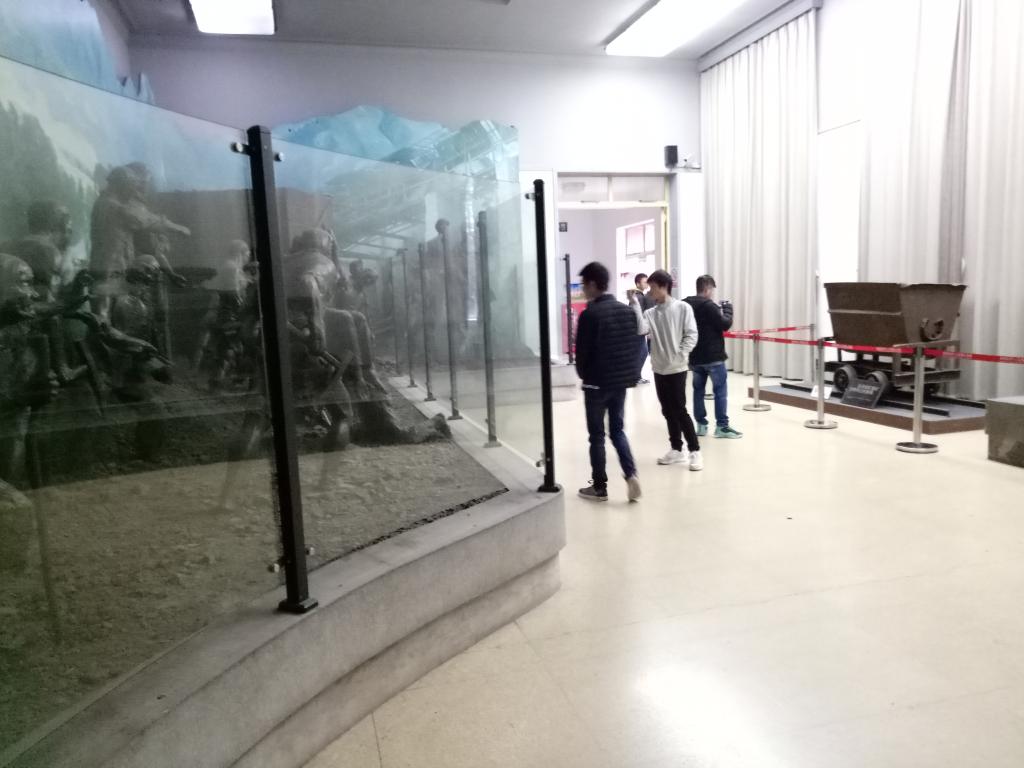 大家怀着敬仰的心情来到了这个神圣的地方,映入眼帘的是位于纪念馆门前的毛主席雕像,恢弘而雄伟。进入馆内,一件件馆藏向我们展示了当年伟大而艰难的安源路矿工人运动。纪念馆内大致分为六个部分:(一)三重压迫下的路矿工人;(二)组织起来;(三)路矿工人大罢工;(四)“二七”惨案后的坚持和发展;(五)工农联合,支援北伐;(六)秋收起义,武装割据。除了文字图片和实物外,还有《矿工苦》、《毛泽东去安源》、《大罢工》等大型雕塑。安源是早期无产阶级革命家领导中国革命的发源地,矿工的艰苦奋斗,不畏强权的精神无不打动着在场参观的每一位同学。艰苦卓绝的革命斗争,旗帜鲜明、信念坚定的政治方向,不仅在安源和它的煤矿工人上体现得淋漓尽致,这更是中国无产阶级革命和奋斗的一个缩影。