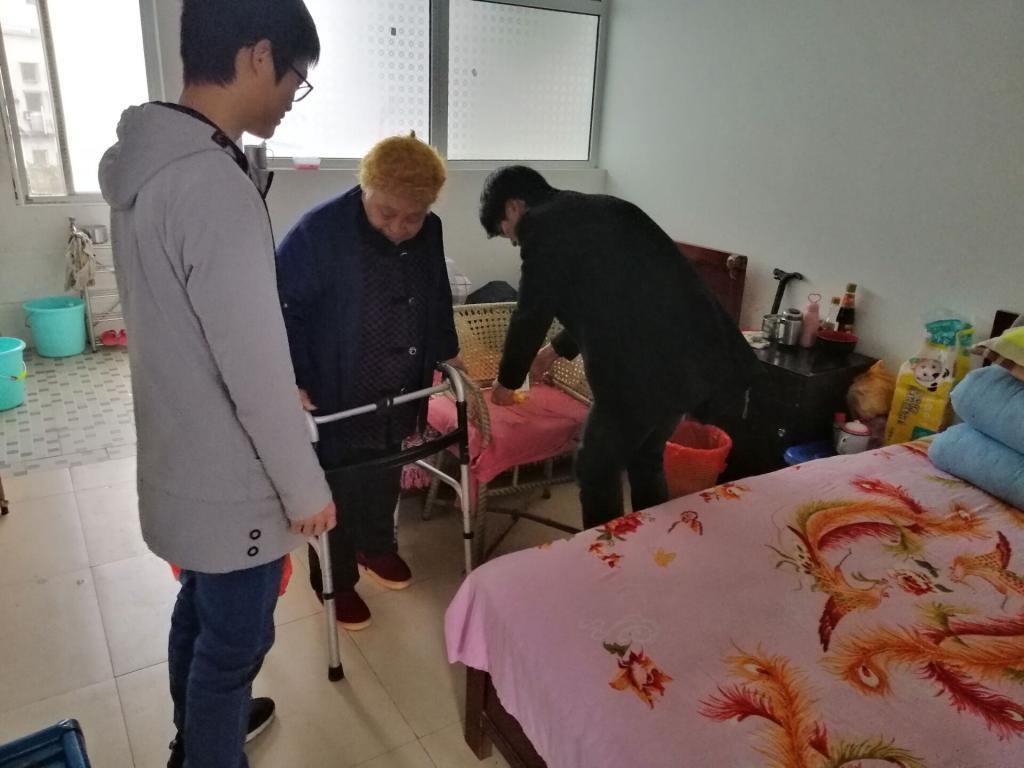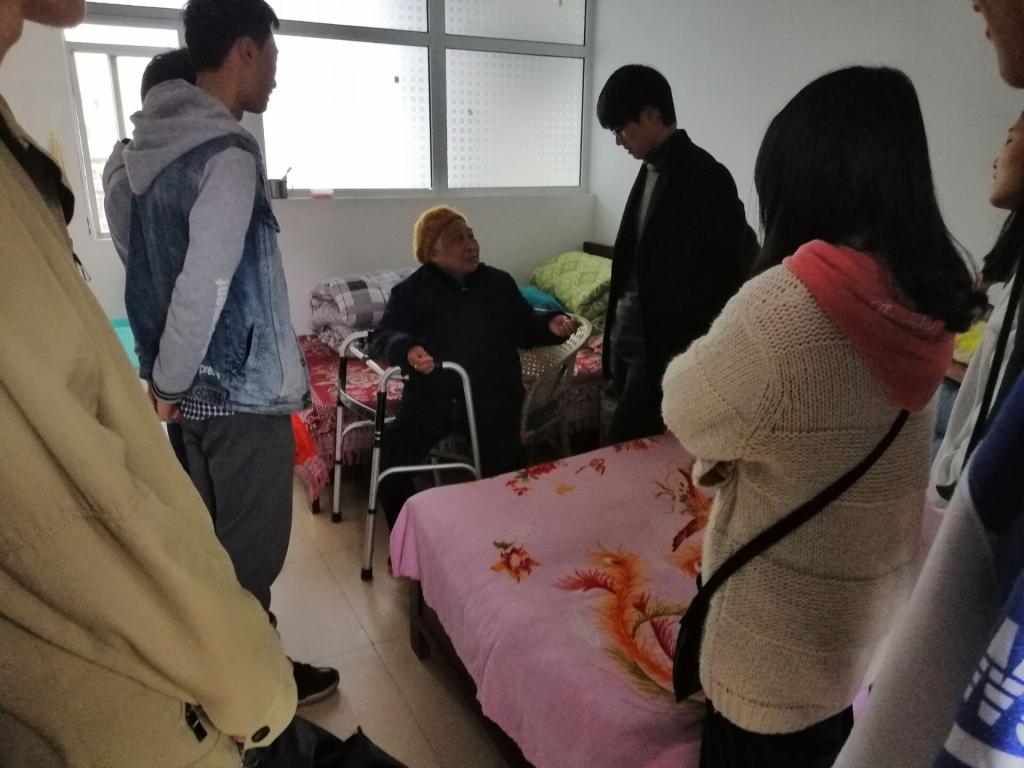 早上九点,下着淅淅沥沥的小雨,同学们带上自己的一点小心意来到了敬老院,与敬老院当天负责人交接后,同学们来到每个老人们的房间与他们交谈,同学们在那儿认真听他们曾经的故事,爷爷奶奶们脸上洋溢着一种满足。在看望完所有老人之后,紧接着小分队和老人们开展了一系列活动,有的同学陪着老人下象棋和玩纸牌游戏,有的陪着老人看他们陪着人看他们喜欢的战争片,也有人拉着老人的手询问生活情况谈谈心,一时间敬老院洋溢着幸福的笑声。时间过的很快,我们就要离开了,我们怀着不舍的心情向老人告别,老人不舍地向我们挥挥手,我们在老人满怀不舍的目光下离开了,与老人陪伴的时间虽不长但情感却深深地烙在我心中。
