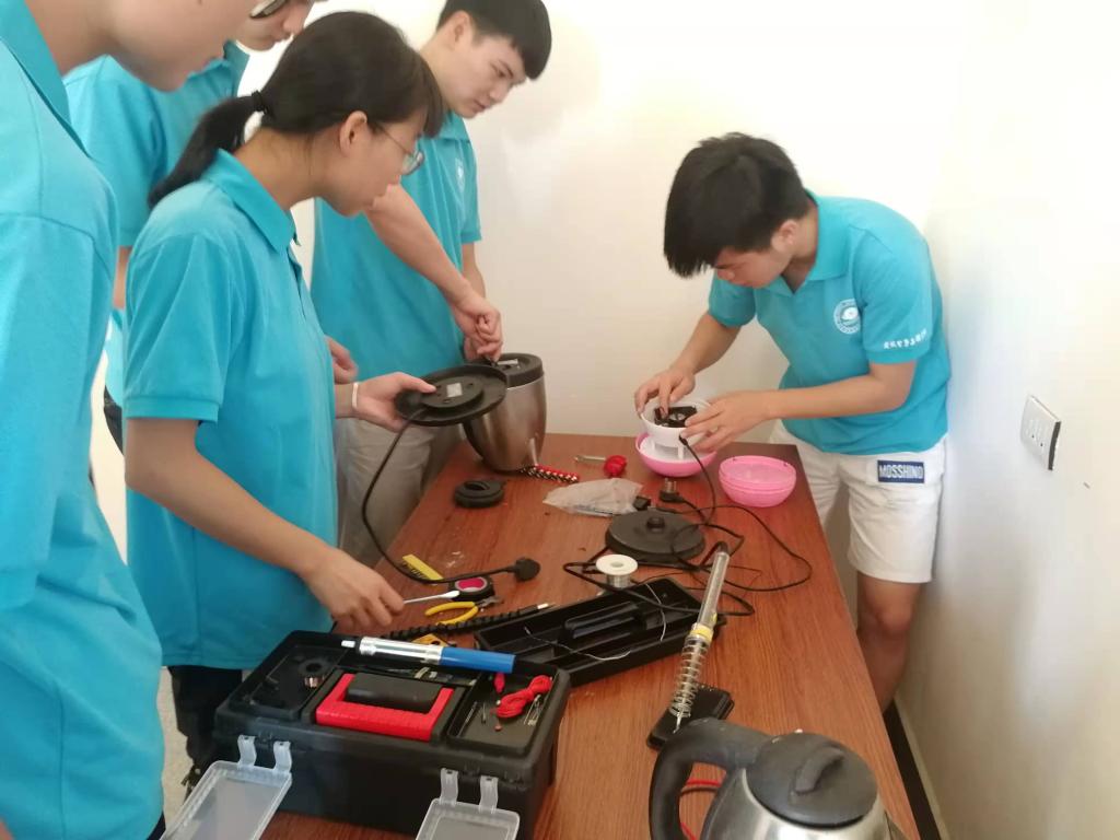 一大早志愿服务团队在整理完维修工具后,便来到了宫江村村委会维修点。来到维修点后,大家便开始进行工具检查和座椅摆放等前期工作。随后维修点便迎来了络绎不绝的送修人群,送来损坏的电扇、台灯、热水壶等电器,队员们热情接待前来的乡亲们,认真询问所送电器存在的问题并及时记录,同时还向他们讲述维修知识。在此期间,村主任何主任来到维修现场,查看了维修登记表和已修理的电器,对维修队员的辛苦工作表示深深地赞许。活动一直进行到下午5点。在这次活动中,同学们发扬不怕苦,不怕累,不怕麻烦的精神,争取为村民修好更多电器,为他们带来更多方便,队员们扎实的技术和良好的服务态度也受到乡亲们的一致好评。