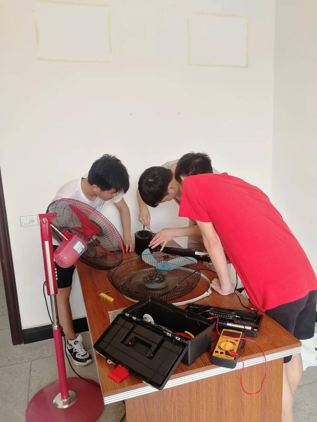 2019年7月17日,yl23455永利集团大学生暑期“三下乡”社会实践服务队在实践基地上栗县东源乡宫江村开展了以“科学技术出机电,义务维修行乡村”为主题的义务维修活动。