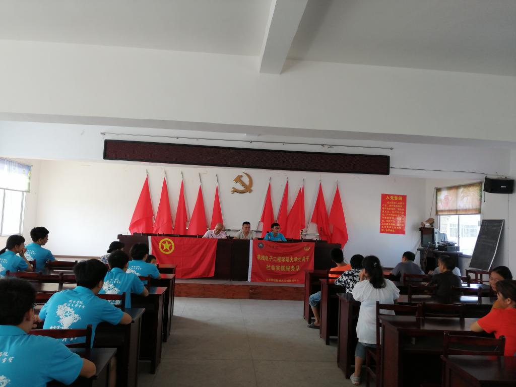 2019年7月19日,yl23455永利集团大学生暑期三下乡社会实践团队在宫江村开展脱贫宣讲活动,宣讲主题是习近平新时代中国特色社会主义思想和党的十九大精神。此次宣讲活动由学院学生分会团总支副书记冷强鑫主持开展。出席本次会议的有驻村第一书记邱书记、何主任及学生会骨干成员和宫江村贫困村民。