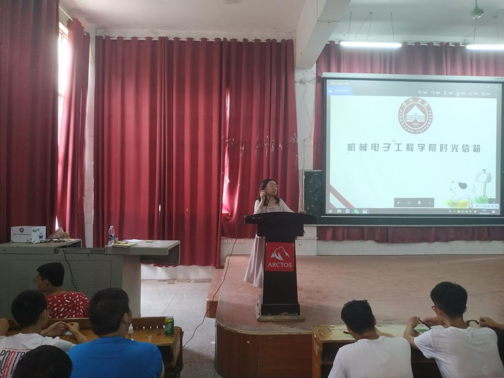 “从前车马很远,书信很慢”。在这个网络发达的时代,写一封信成为了一件遥遥无期的事情。活动伊始,播放了由老师、辅导员、家长及学长学姐对新生的寄语的小视频。接着由鲁老师向同学们介绍此次活动,指出在快节奏的现代生活里,“时光寄语”能唤起学生对现实生活的热爱与珍惜,对未来的憧憬畅想之情,能使每位同学抓住当下,并激发同学努力勇闯未来的动力,从而营造积极向上、充斥青春激情与未来希望的学校氛围。