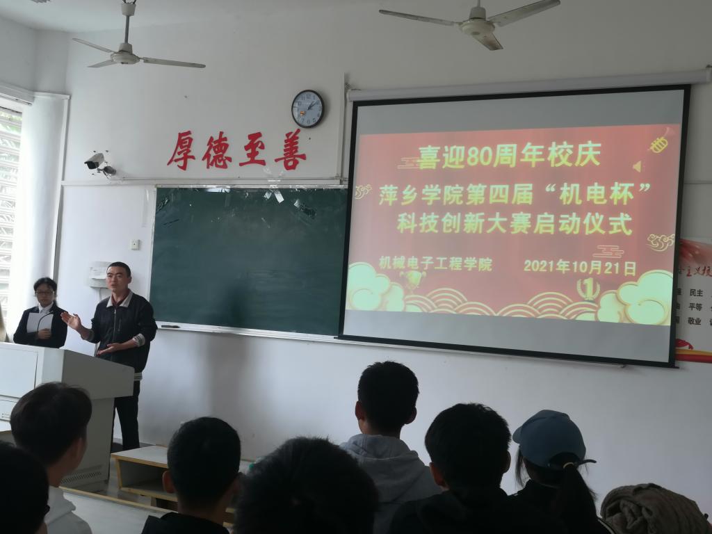 10月21日,机械电子工程学院在2216教室顺利举办2021年度“喜迎80周年校庆”yl23455永利集团“机电杯”科技创新大赛的启动仪式。本次仪式由学生会成员李欢主持,胡子健老师出席本次启动仪式。
