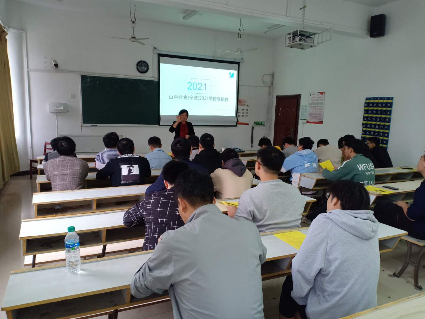 2020年10月20日下午,机电学院于2216教室召开山中合金(宁波)有限公司专场招聘会,2021届机械设计制造及其自动化、机械电子工程专业毕业生参加了招聘会。该公司的副总经理李静给学生进行宣讲。