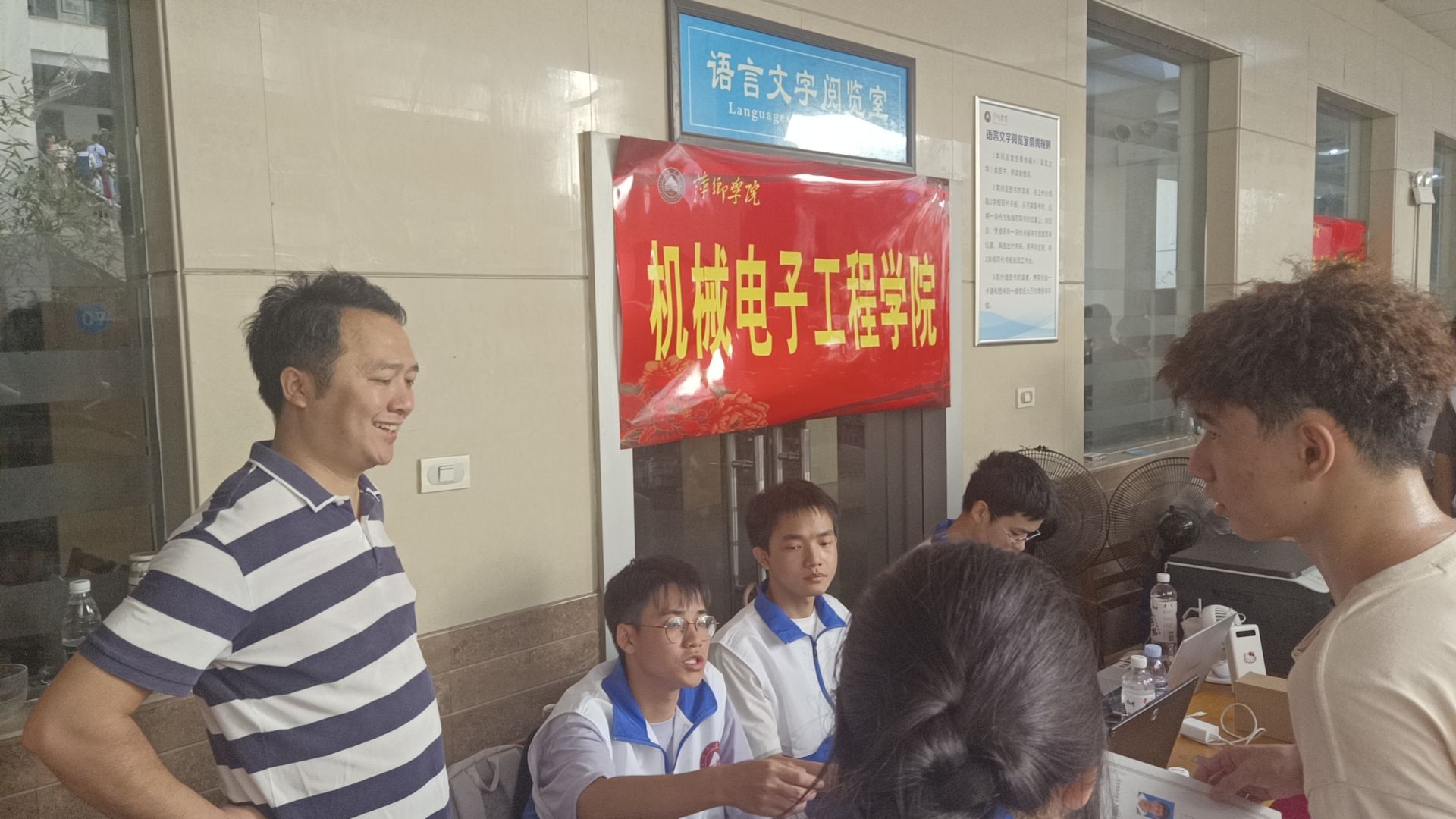 为做好2023年秋季新生入学报到工作,机械电子工程学院高度重视,对各项工作提前进行了周密部署。9月9日上午,学院党委书记王斌、院长李涛涛一行来到南图书馆迎新点现场指导工作,看望前来报到的新生和辛勤付出的工作人员、志愿者,并叮嘱迎新工作人员要坚守岗位,全力做好迎新工作。迎新现场,他们为新生及家长答疑解惑,并寄语新生们:要志存高远,脚踏实地,为建设社会主义现代化强国踔厉奋发,要为实现自己的梦想努力学习,做最美的自己。