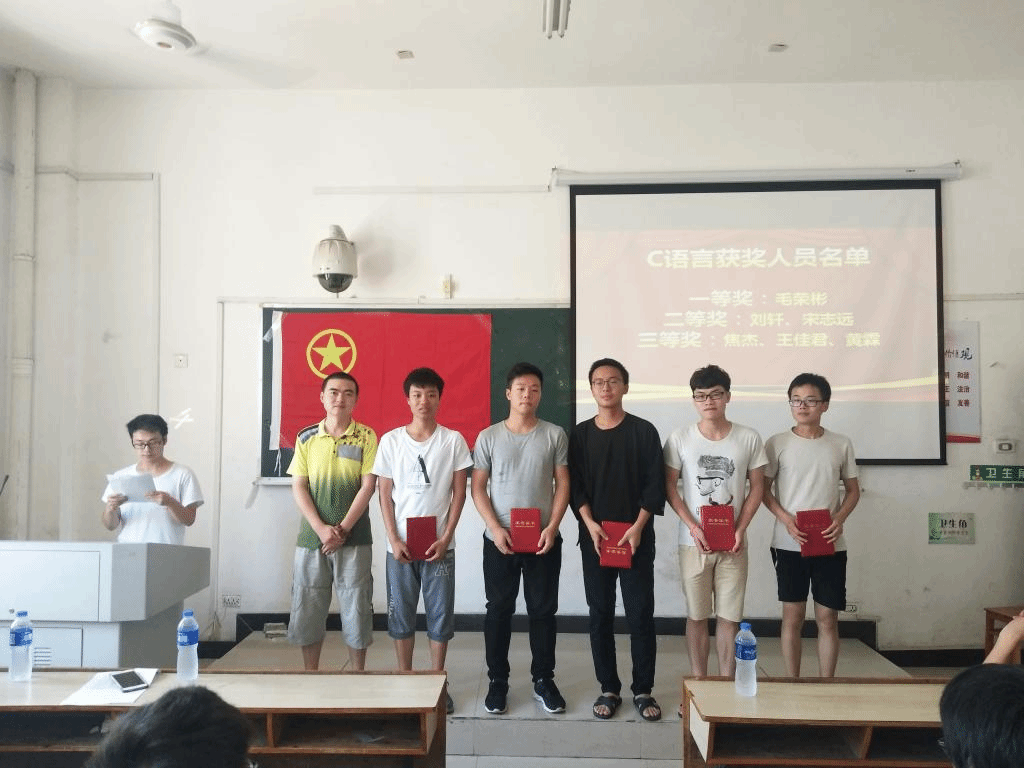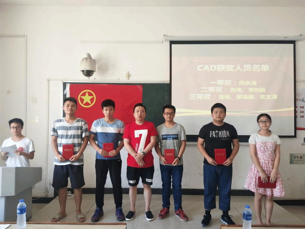 童乐、胡子健老师宣读表彰决定并依次为获奖同学进行颁奖。其中CAD、SolidWorks双项比赛一等奖获得者师永涛同学上台发表获奖感言,分享学习经验,同时C语言一等奖获得者毛荣彬也发表感想,表达了对老师帮助的感谢。