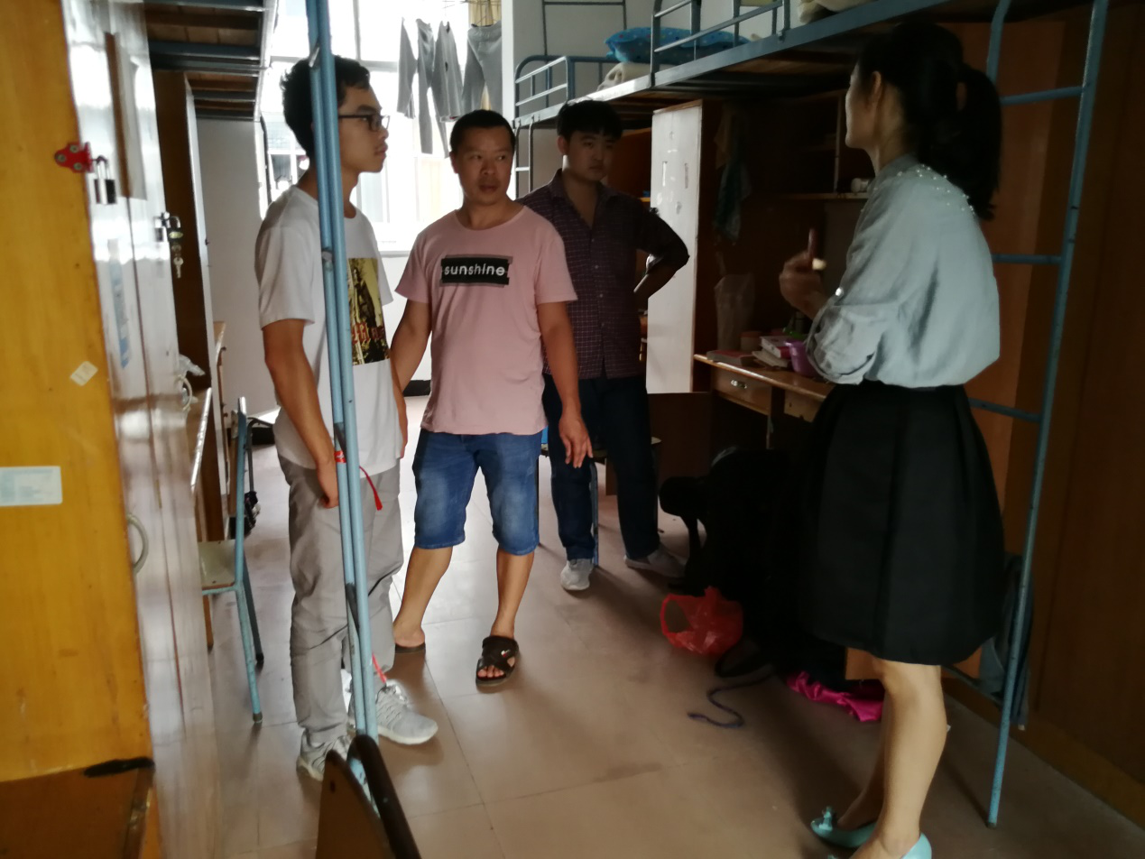 进入寝室,杨芳老师热情友好的与家长、学生进行沟通,亲切地询问了新生的一些基本情况,还关心到新生对新环境是否习惯,有些什么困难,强调了一些校园安全知识,对同学们提出的一些问题进行耐心解答。同时要求同学们互相关心,多多交流,如果遇到了难以解决的困难,应及时向学院领导、辅导员寻求帮助,尽快地适应大学生活,并对他们的到来表示欢迎。
