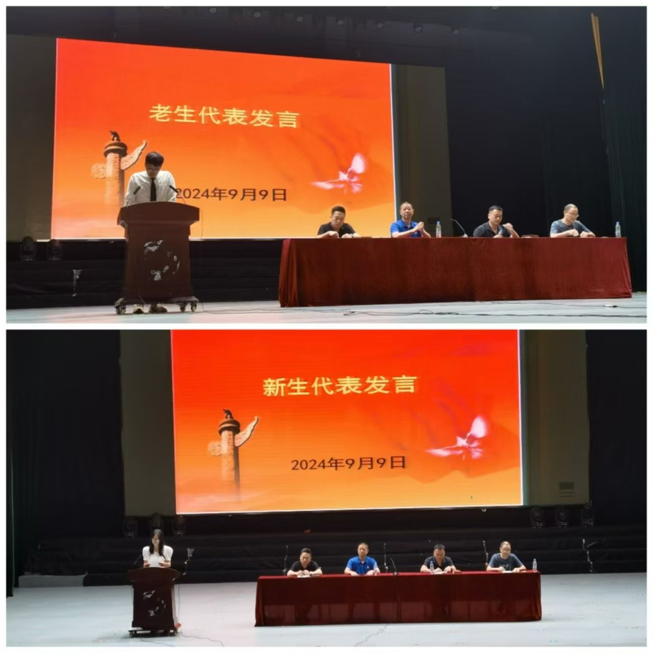 在校生代表2023级机械设计制造及其自动化专业罗旺传同学向学弟学妹们分享了关于个人成长的思考,他鼓励同学们积极进取,保持不断学习的兴趣,不畏失败,坚定前行,以最昂扬的姿态拥抱即将开启的大学生活。2024级电子信息工程专业涂慧琳作为新生代表发言,她分享了自己的求学感悟,希望大家深化思考,迎接挑战,以饱满的热情和积极的态度持续努力奋斗。