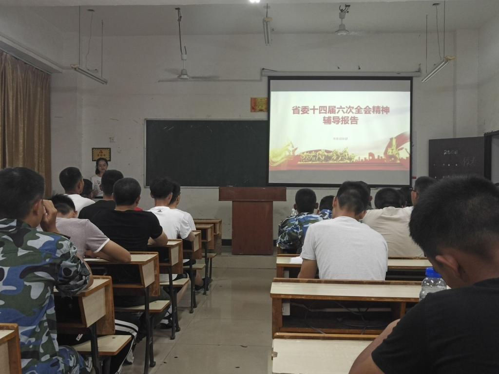 为深入学习宣传贯彻省委十四届六次全会精神,引导广大青年学生把思想统一到省委十四届六次全会精神上来,2018年9月28日晚,机电学院召开了省委十四届六次全会精神专题学习会。辅导员杨芳老师担任宣讲员。18机设专业学生参加了会议。