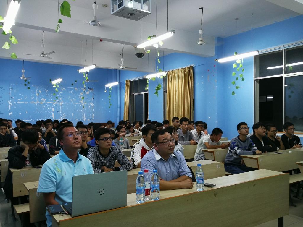 2018年9月28日晚,江西财经大学软件与物联网工程学院孙建成教授、汪靖博士为学生主讲,介绍了江西财大软件与物联网学院的基本概况、近期研究项目及优惠政策,分析了各个专业方向以及就业领域,给同学们指明了今后的努力方向。