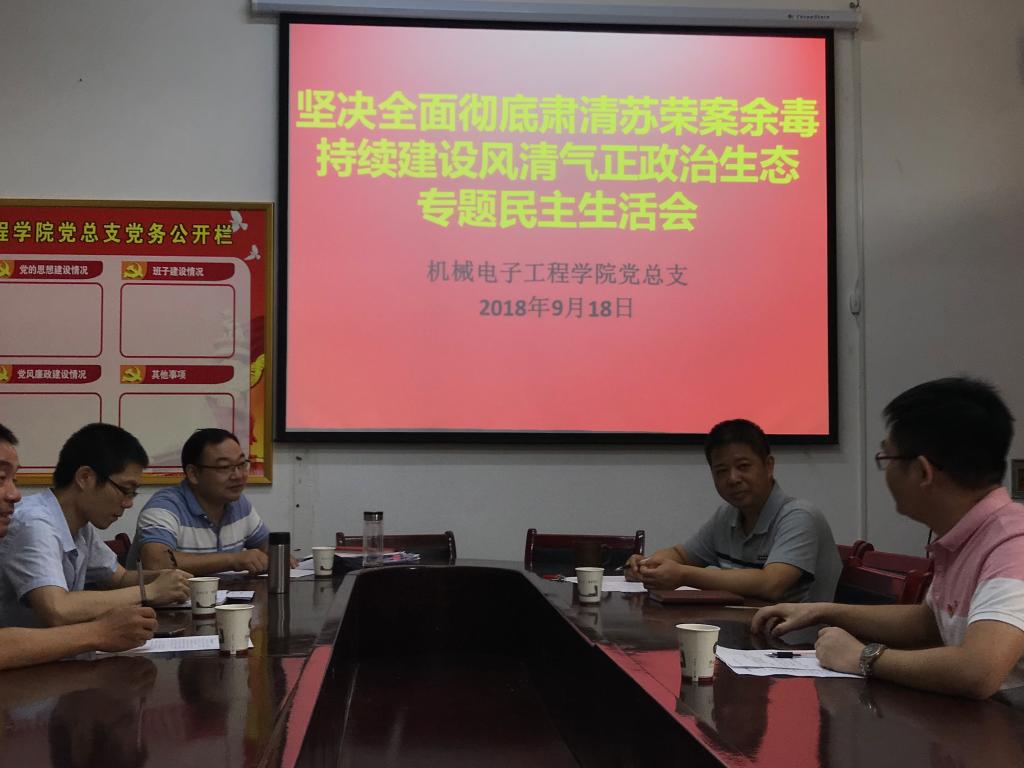 2018年9月18日,yl23455永利集团党总支在党员活动室召开了“坚决全面彻底肃清苏荣案余毒持续建设风清气正政治生态”专题民主生活会。学校组织部副部长王林清、yl23455永利集团班子成员、支委成员参加了会议,会议由yl23455永利集团党总支书记王斌主持。