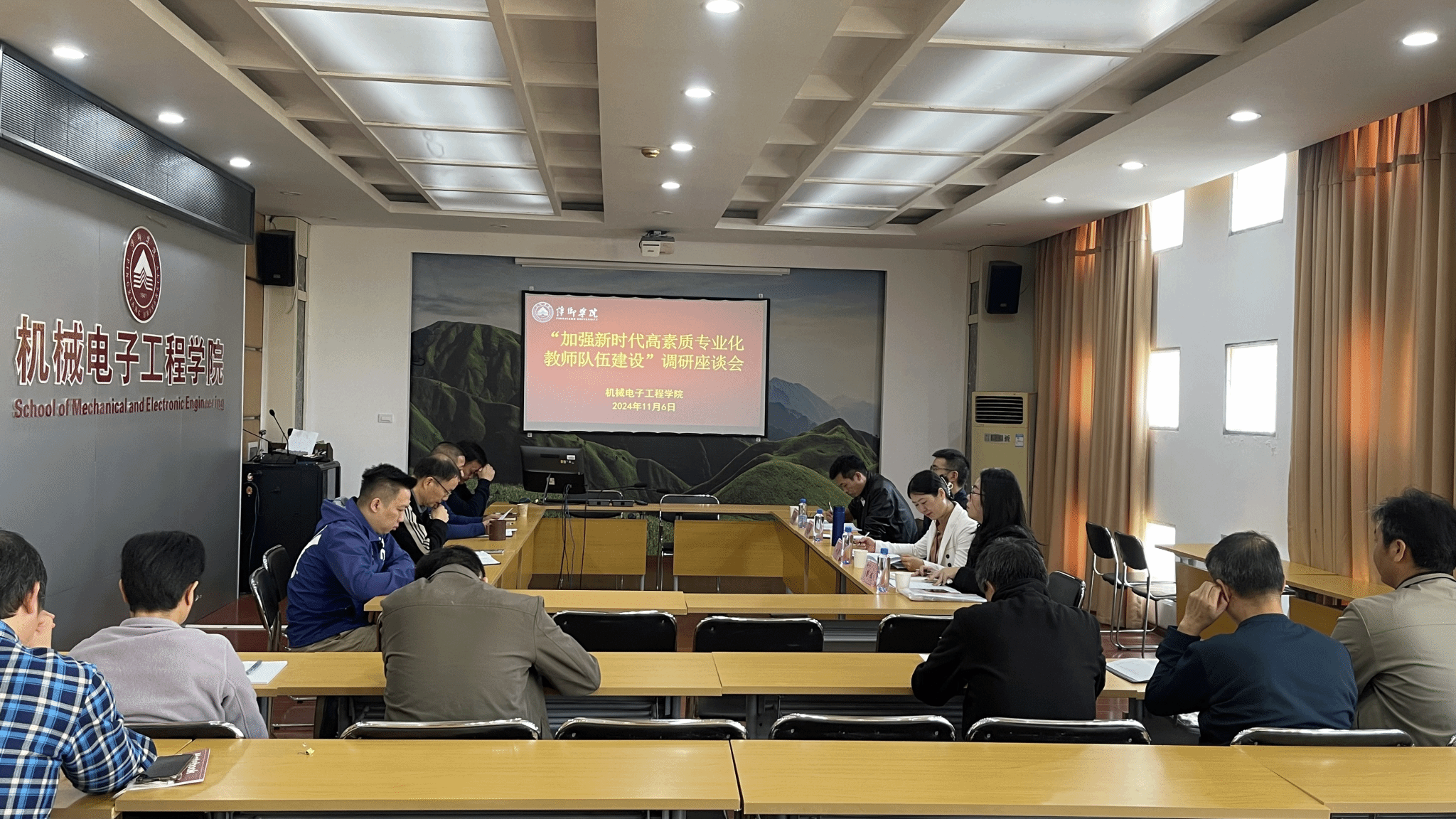 为贯彻落实党的二十届三中全会精神和《中共中央国务院关于弘扬教育家精神加强新时代高素质专业化教师队伍建设的意见》精神,深入推进人才强校战略,着力推动高水平师资队伍建设,2024年11月6日上午,副校长黄志开、人事处处长刘霞一行来学院就“加强新时代高素质专业化教师队伍建设”开展专题调研,学院领导班子、各教研室主任参加座谈会。