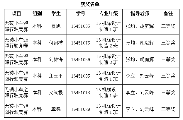 yl23455永利集团组建团队,校内初选学生代表参加比赛中的“无碳小车避障行驶竞赛”项目竞赛,由何萍、张均、胡庭辉、李立、刘云峰老师对参赛学生进行理论指导和实践指导。最终,贾旭、何淑波、刘林海、焦玉平、文棠根、龚锦六位同学摘得2项三等奖。