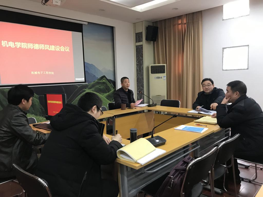 为深入贯彻落实中央关于高校师德建设的相关要求,加强新时代教师队伍建设,牢固树立“教师德为先”的理念,2019年2月26日下午,机电学院在会议室2200召开师德师风建设专题会议。全院教职工参加,会议由党总支书记王斌主持。
