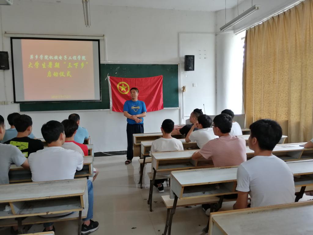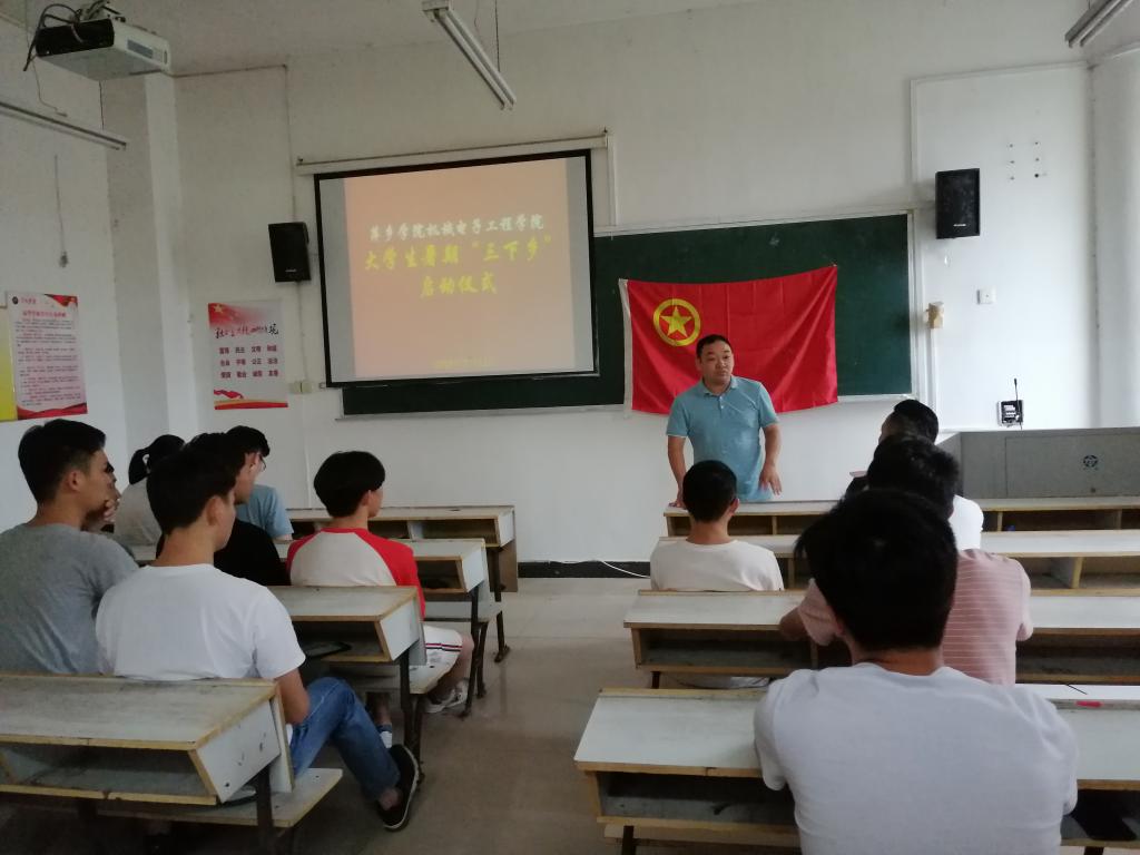 为了更好地指导大学生暑假“三下乡”社会实践活动,进一步提高学生的综合素质,7月12日,机电学院于2218教室举行2019年暑假“三下乡”社会实践启动仪式。仪式由学院学生分会冷强鑫同学主持。机电学院党总支书记王斌、副书记王立平出席了本次仪式,辅导员童乐、杨芳、张陆老师也参加了启动仪式。