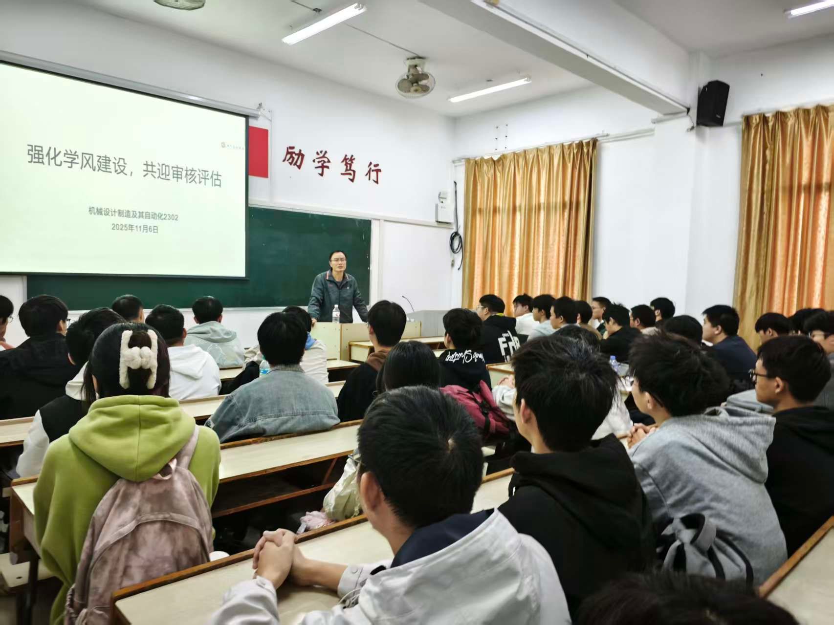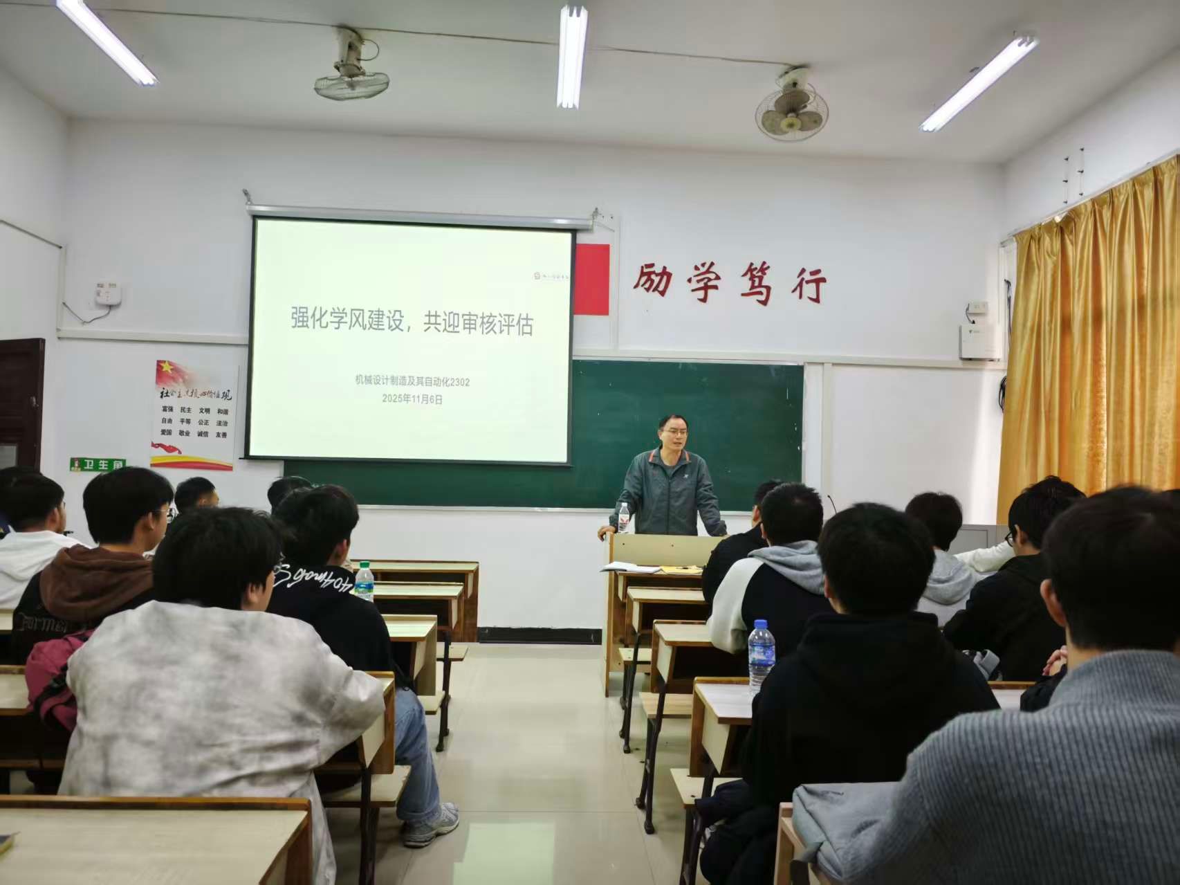 2025年11月6日,yl23455永利集团23机设2班在鼎新楼2603教室召开“强化学风建设,共迎审核评估”主题班会,学院副院长、班级“三联系”挂点领导张红钢博士到会指导,班会由辅导员黄鸥老师主持。