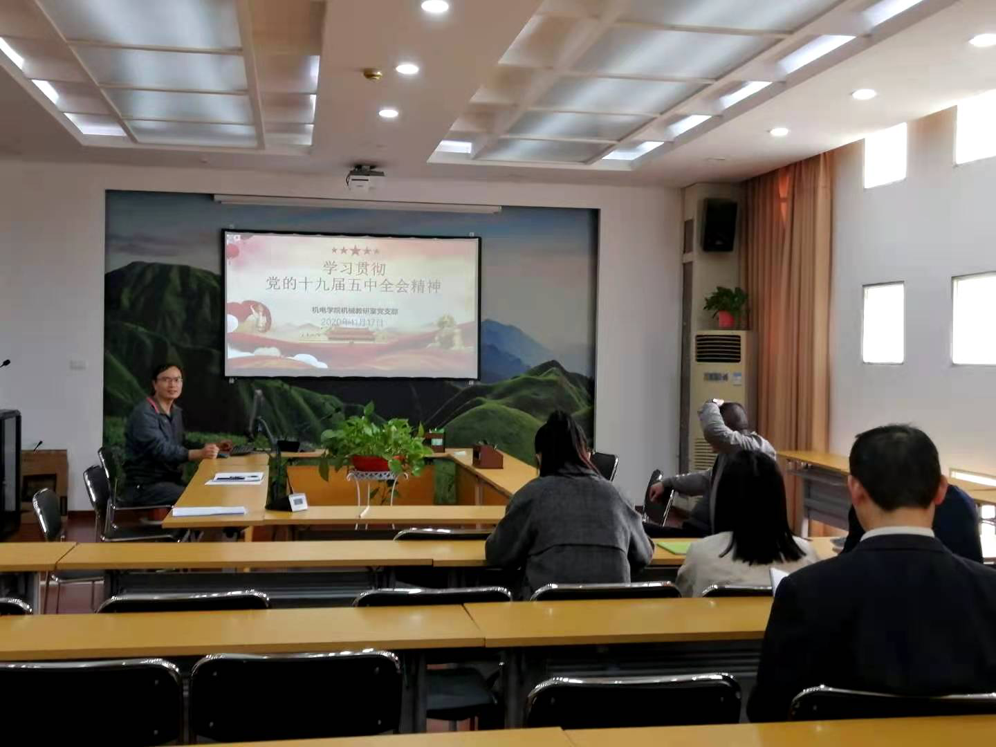 11月17日,机电学院机械教研室党支部在2200会议室开展十九届五中全会精神学习的专题党课,由支部书记张红钢主讲,全体党员参加了党课学习活动。