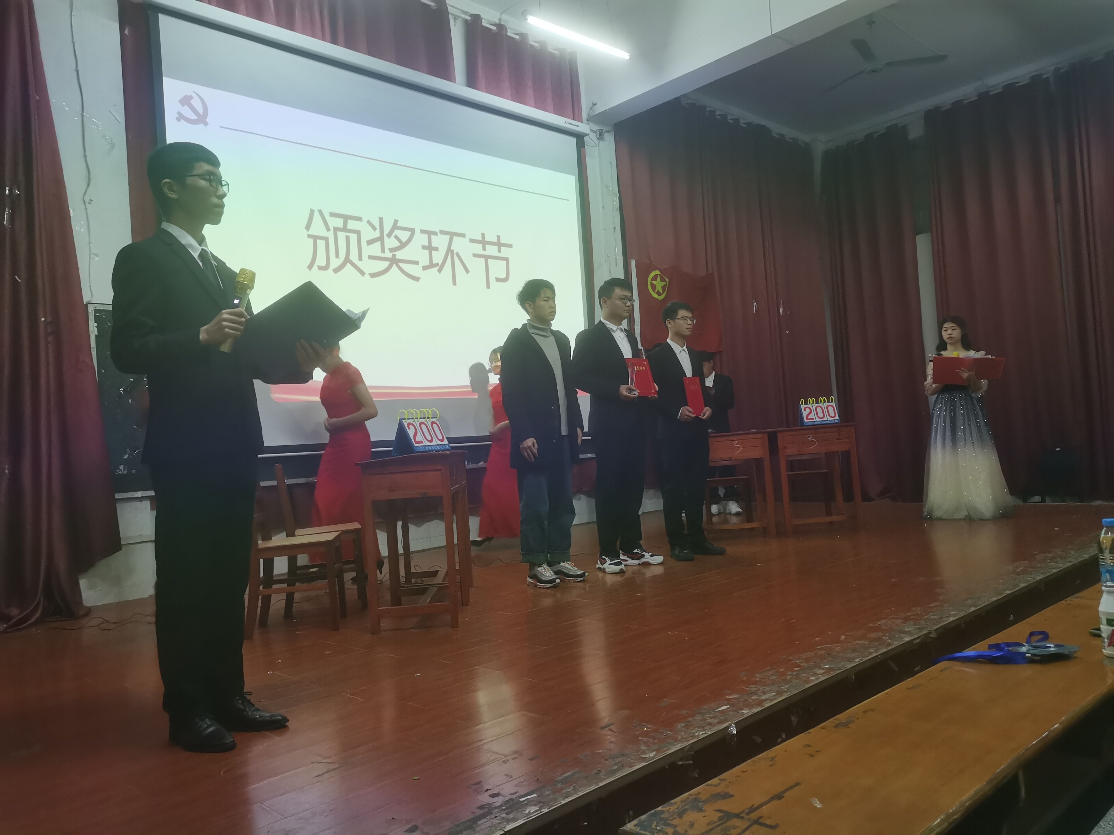 比赛项目共分三项,依次为抢答题,风险题以及问鼎中原。所有选手被分为第一组和第二组分别进行对战。台上,选手身着正装,肃穆以待,随时以最饱满的精神迎接竞赛。比赛中,他们才思敏捷,总能在第一时间回答出抽取的题目,用自己的知识和热情感染了一大片台下的观众。随着比赛逐渐白热化,选手们早已不在乎输亦或是赢,他们所想的只是努力答好每一题。几组选手们的不放弃和自信满满的姿态赢得了台下观众一次又一次的掌声。在中场休息期间,主持人也组织了丰富多彩的小游戏充分和台下观众互动,为紧张激烈的比赛增添了几分轻松的气氛。比赛结束后,为各位参赛选手颁奖并合影留念。