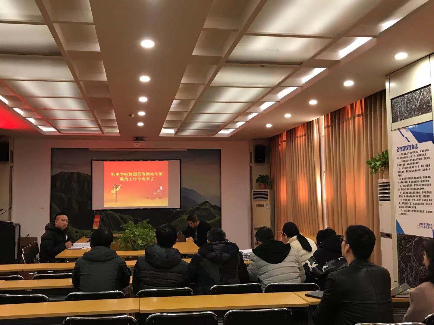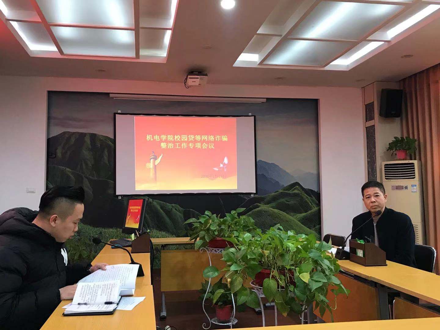 为及时传达学校关于集中开展校园贷专项整治工作精神,提高大学生网络风险的防范意识。12月9日中午,机电学院在2200会议室召开校园贷等网络诈骗整治工作专项会议。会议由学院党总支书记王斌主持,学院全体辅导员、班主任参加。