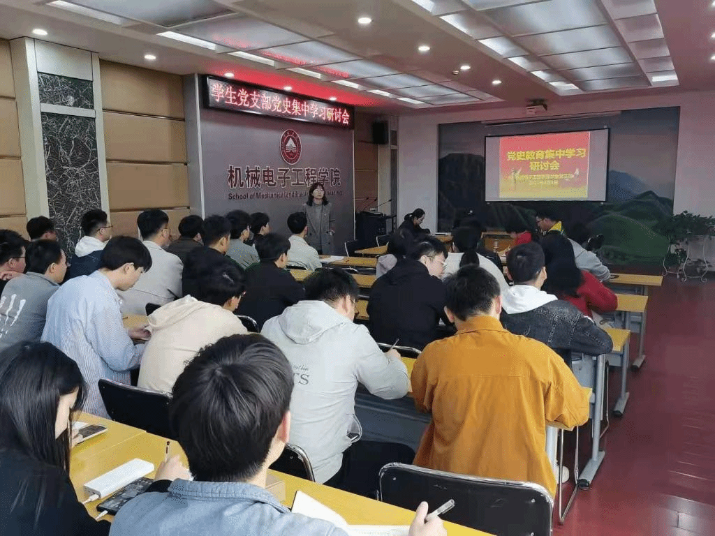为深入学习贯彻习近平总书记在中央党史学习教育动员大会上的重要讲话精神,全面落实省委、省委教育工委、市委和学校党史学习教育动员大会精神,2021年4月9日,机电学院学生党支部在鼎新楼2200会议室开展了党史集中学习交流讨论会。学生党支部全体师生党员参与了此次集中学习。