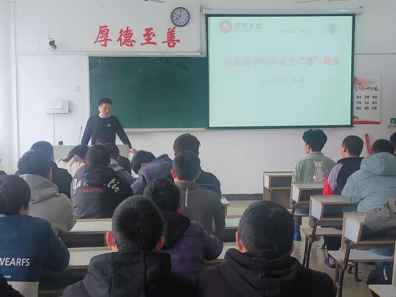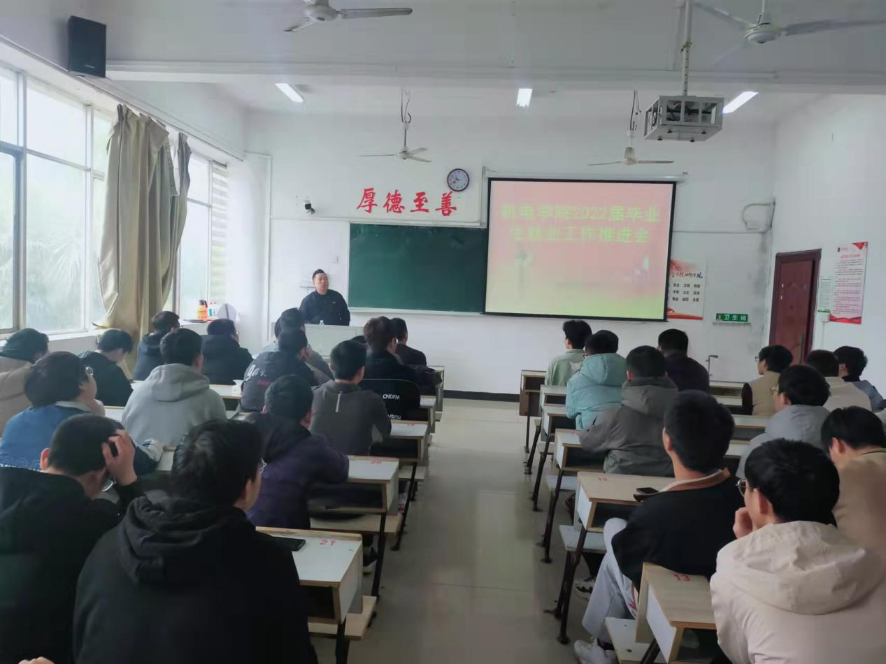 为全力做好2022届毕业生就业工作,yl23455永利集团于4月1日上午10:00鼎新楼在2216教室召开就业工作推进会,研究部署近期就业工作,会议由机电学院党委副书记童乐、就业处温磊、毕业班辅导员以及在校未就业的毕业生参加,本次就业会由杨芳老师主持。