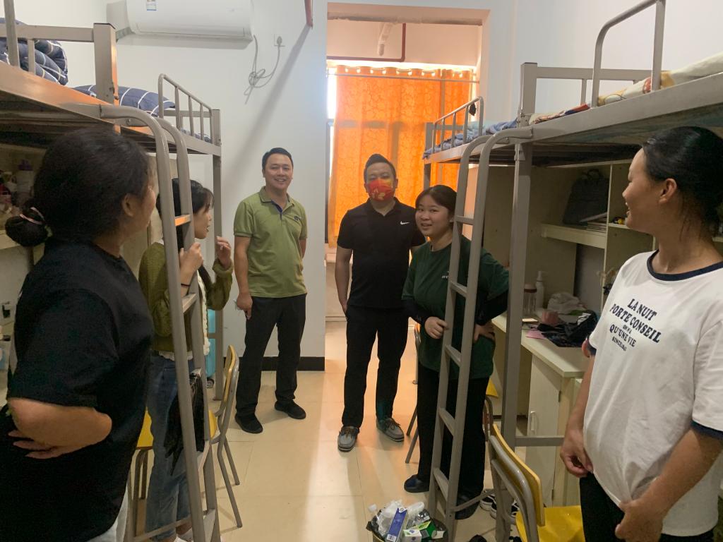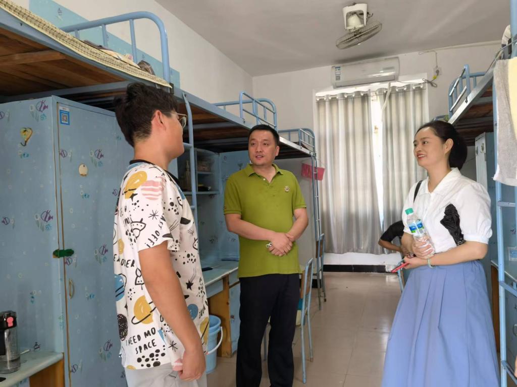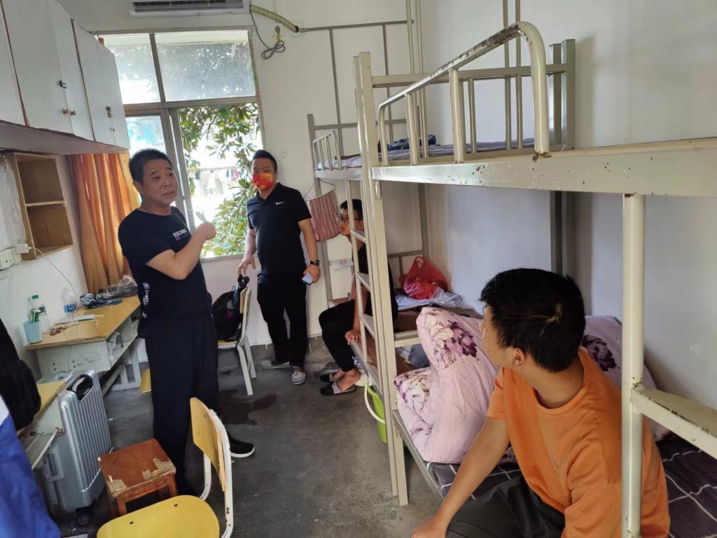 2022年9月12日上午,yl23455永利集团党委书记王斌、院长李涛涛、副书记童乐、副院长刘耀和新生辅导员先后深入3栋、7栋、18栋的2022级新生宿舍,对新生表示慰问和关心。