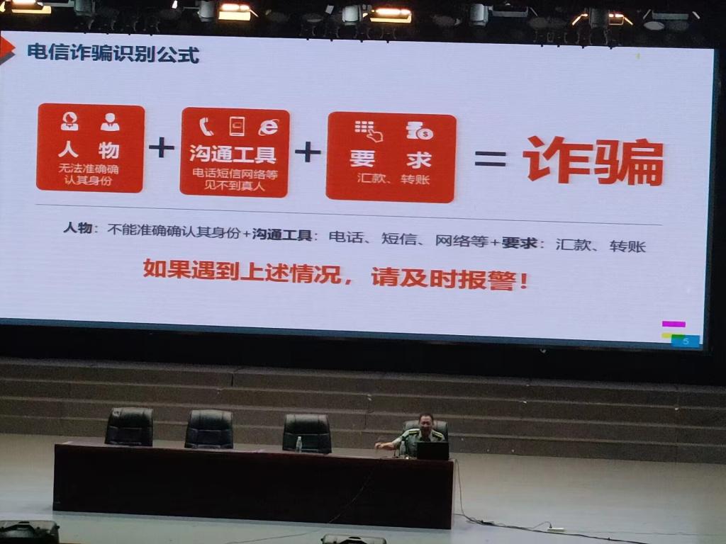 首先,陈处长围绕“普及安全知识、提高避险能力”主题,从国家安全、人身财产安全和交通安全、校园安全等方面进行讲解。他结合自身多年来的实践经验,认真梳理了近几年发生的真实案例,警示同学们保护好自己的私人财产,列举了校园诈骗、刷单诈骗、校园贷、电话诈骗、网络诈骗等多种诈骗类型,向现场师生分析了诈骗案件发生的主要原因,并重点围绕提高师生自我防范意识和自我有保护能力提供了针对性地应对策略与方法。
