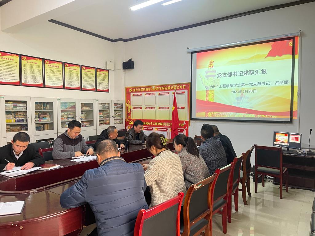 2023年2月28日下午,机电学院在党员活动室召开2022年度党支部书记抓基层党建述职大会。会议由学院党委书记王斌主持,学院领导班子、党委委员、各党支部书记参加了会议。