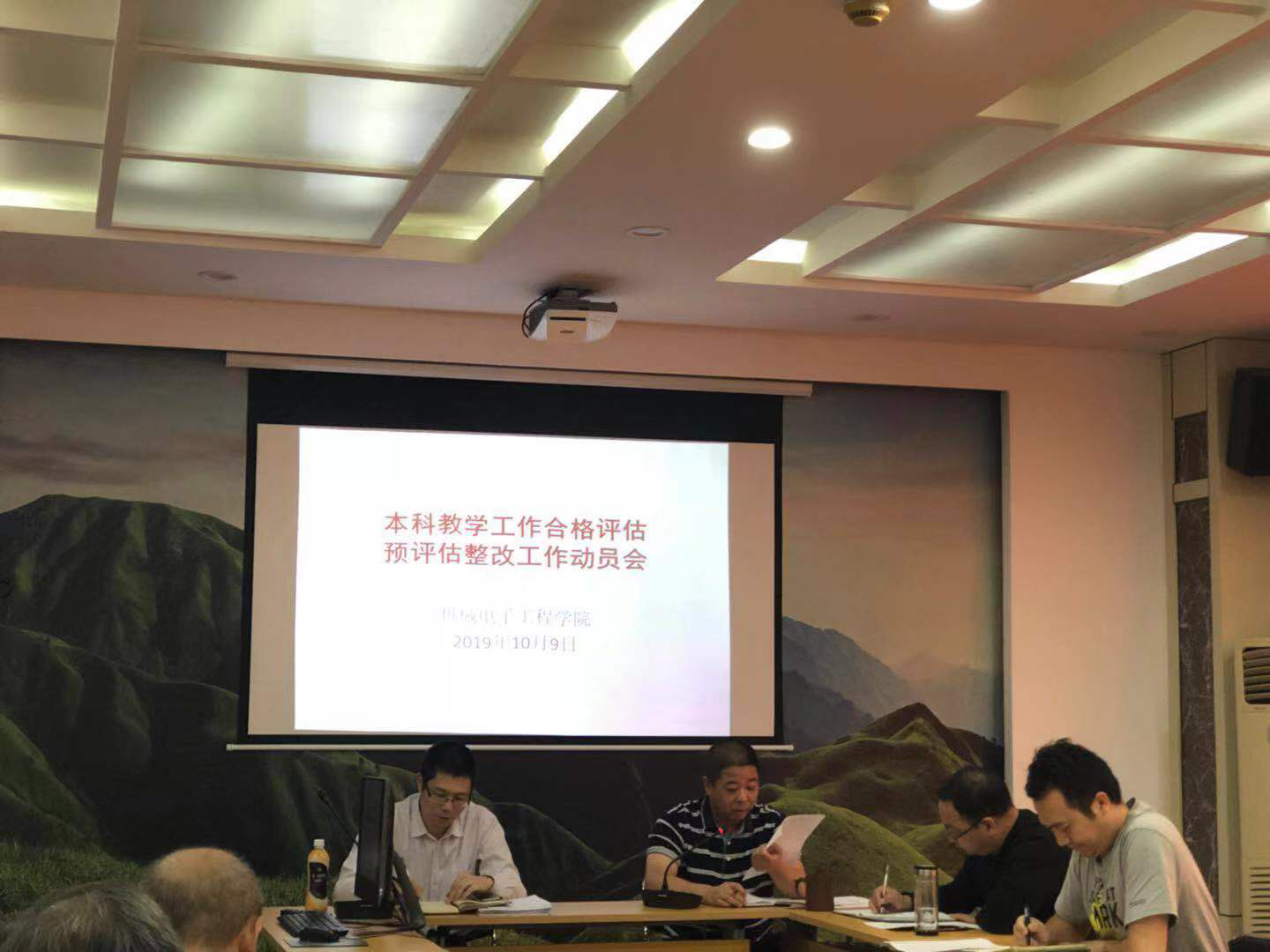 2019年10月9日,yl23455永利集团在鼎新楼2200会议室召开2019-2020-1学期第六周工作会议暨本科教学工作合格评估预评估整改工作动员会,会议由学院书记王斌主持,全体教职工参加。