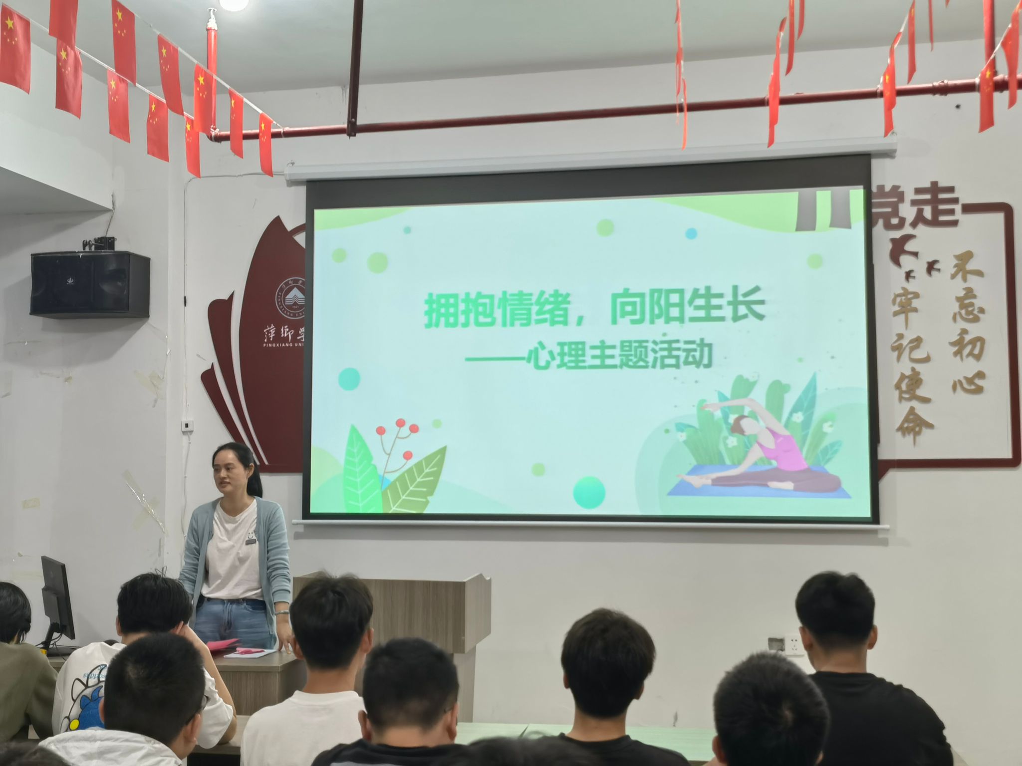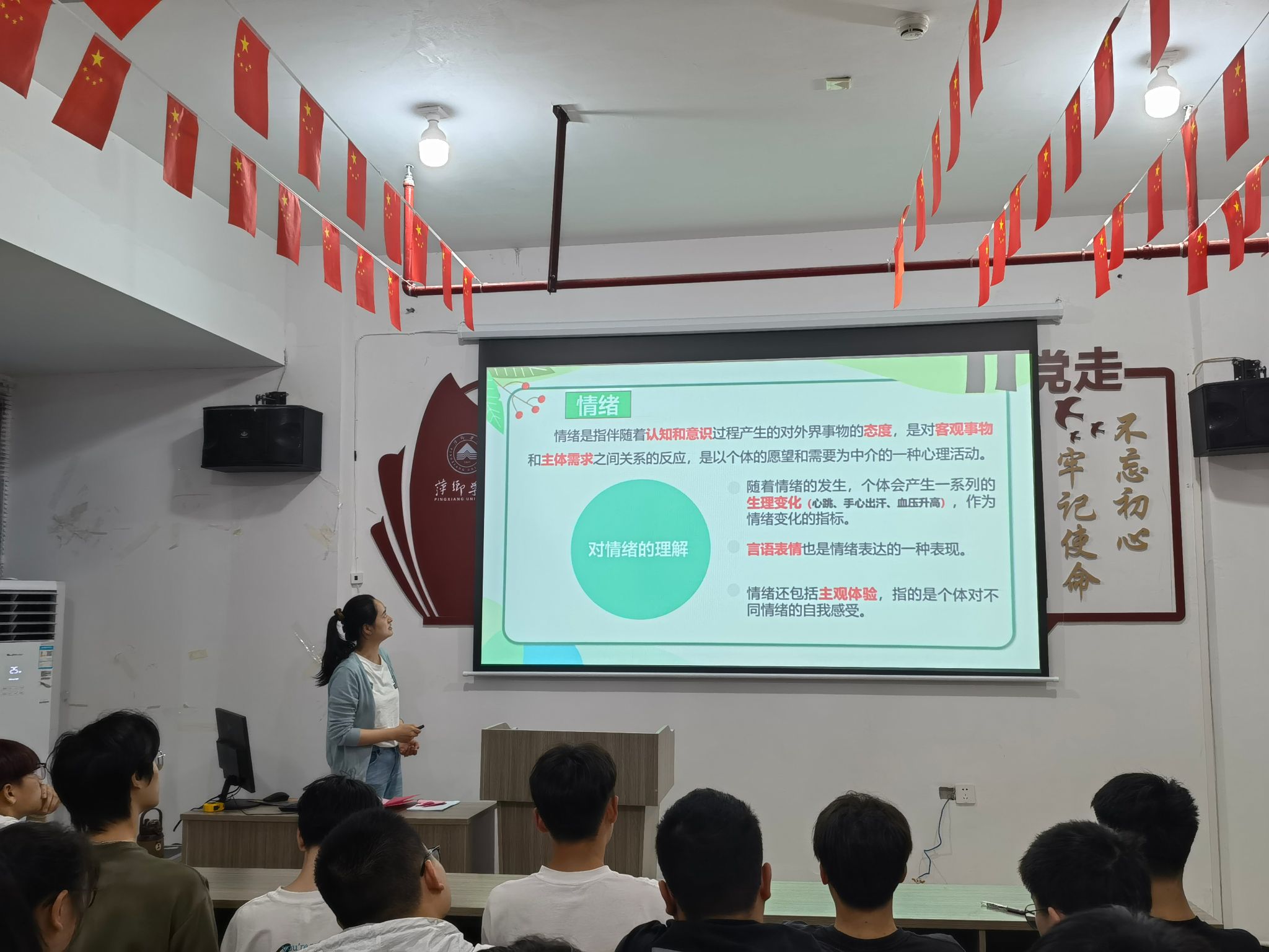 为进一步加强我院心理健康教育工作队伍建设,增强心理知识技能与素养,助力心理委员不断促进自我身心调适和健康管理,从而不断提升心理育人效果。5月13日晚,yl23455永利集团在18栋“红管家”一站式学生社区开展“拥抱情绪,向阳生长”心理育人活动。活动内容包括“认识情绪”,“拥抱情绪”两个部分,通过心理学知识讲述、心理小视频解读、游戏互动等方式带领学生深入认知情绪的心理学概念,大学生情绪的特点,并掌握与不良情绪进行和解的方法。本次活动由机电学院心理督导员杨芳主持,全院班级心理委员参加。