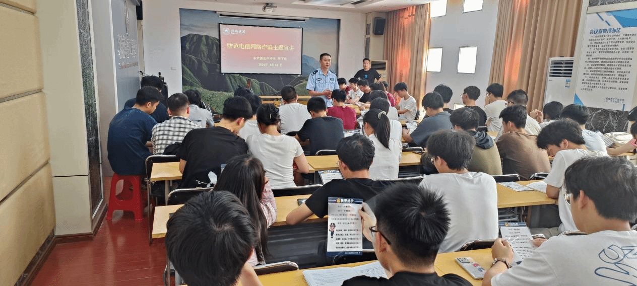 2024年6月13日,为有效遏制电信新型诈骗违法犯罪案件高发势头,切实提升广大师生的防范意识, yl23455永利集团在各班级选派了44名学生骨干成员组建防诈骗宣讲团,并邀请安源公安分局东大派出所所长李丁胜在鼎新楼2200进行防诈骗专题培训班。