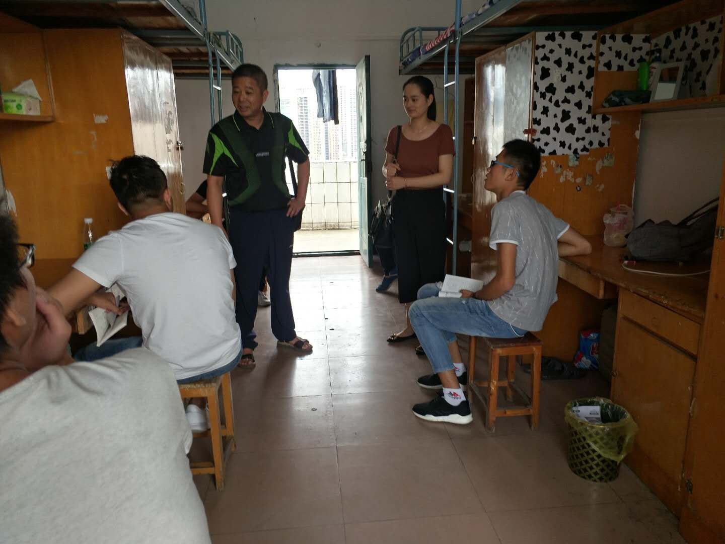 老师们一走进新生的宿舍,热闹非凡的气氛便迎面而来,新生们都忙着打扫自己的寝室,规放物品,整理床铺等。班主任和辅导员关切的问起了学生们的入住情况。要求新同学们要以阳光健康积极的心态迎接大学生活,要和室友、班级同学友爱包容。还提醒同学们要实时关注入学后的一切教学活动安排,以良好的纪律观念参加,并且嘱咐大家有问题要及时向相关的老师反应、沟通。新生们也对老师们的看望表示感谢,纷纷表达了自己对大学生活的期待和憧憬。