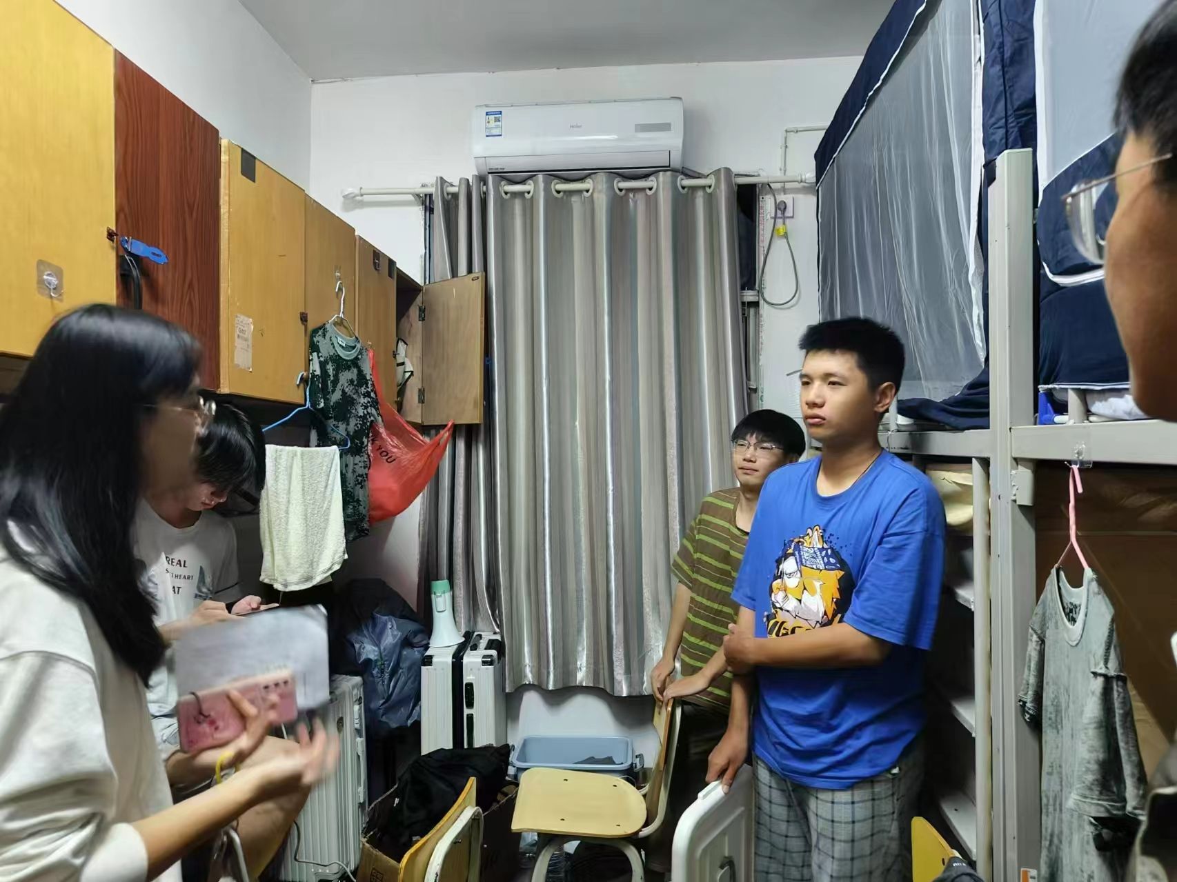 老师们到达学生宿舍后,首先仔细询问新生同学到校后的情况和感受,是否能住得惯、吃得惯,能否适应新环境,了解他们的需求。并告诉同学们在生活中要有安全意识,注意自身安全和财产安全,正确使用电器,保管好随身财物,搞好安全防范,提高自立能力。