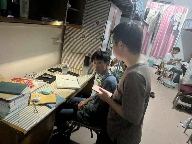 在新生宿舍,李哲老师悉心问候新生的基本情况,在学生入学适应方面为大家进行指导并耐心回答新生的各种问题。同时还强调了宿舍安全,个人财产安全,寝室环境等问题,叮嘱学生在军训期间好好休息,注意防暑,遇到问题及时联系教官和老师,并做好开学上课准备,关怀之情溢于言表,同时也希望新生们能够尽快适应大学生活,积极参与各项活动,努力提升自己的综合素质。