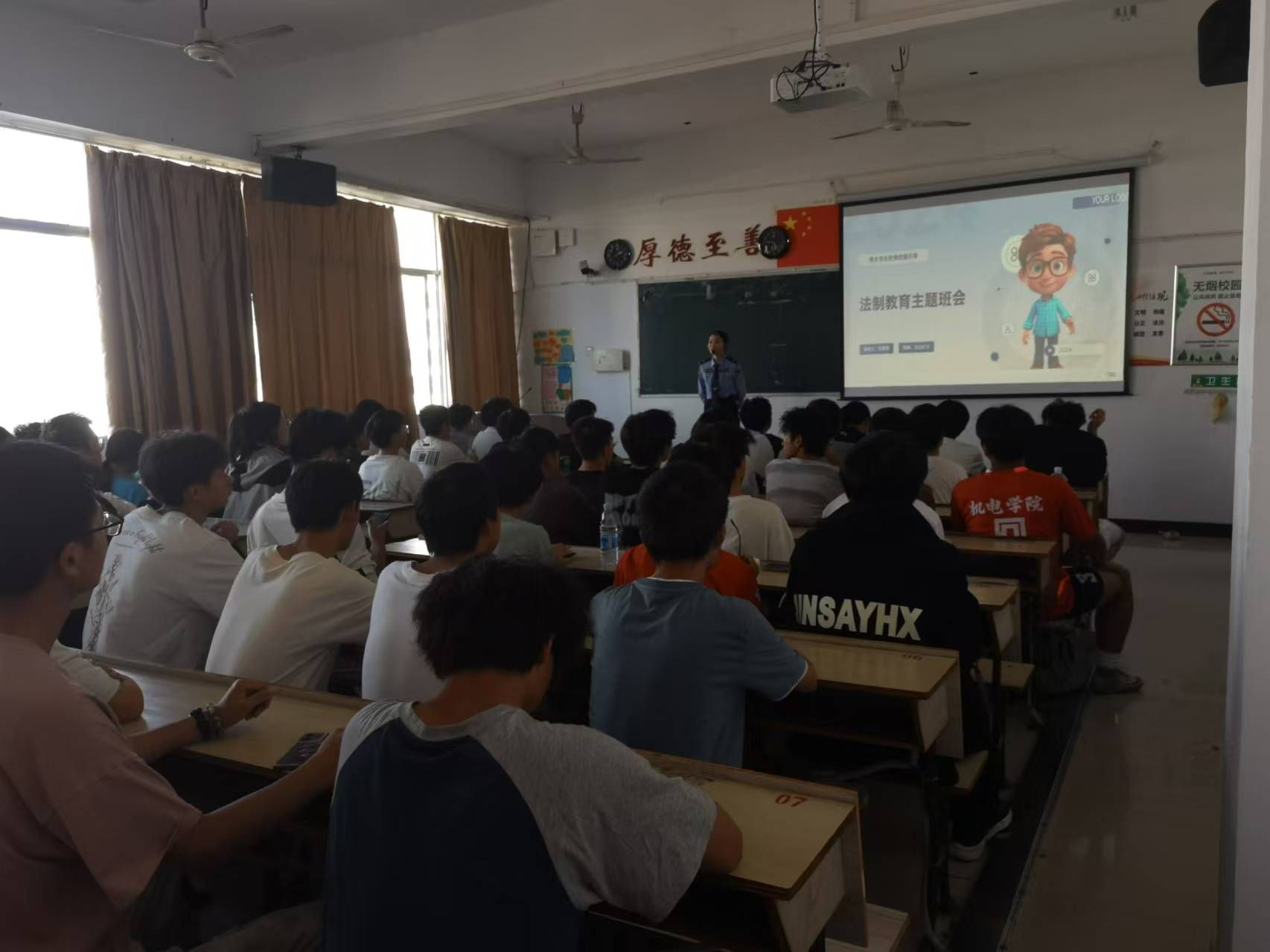 为进一步增强学生的安全意识,提高他们识别和防范恐怖主义及邪教的能力,营造和谐稳定的校园环境。2024年11月13日,机械电子工程2401班在鼎新楼2426教室举办了以“反恐反邪教”为主题的法制教育主题班会。此次班会邀请了萍乡市公安局安源分局民警王嘉慧主讲。